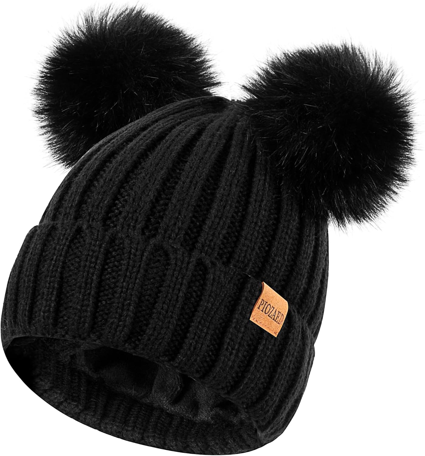 Women's Winter Warm Knit Beanie with Faux Fur Pom Skull Cap Cozy Fleece Lined Hat for Women