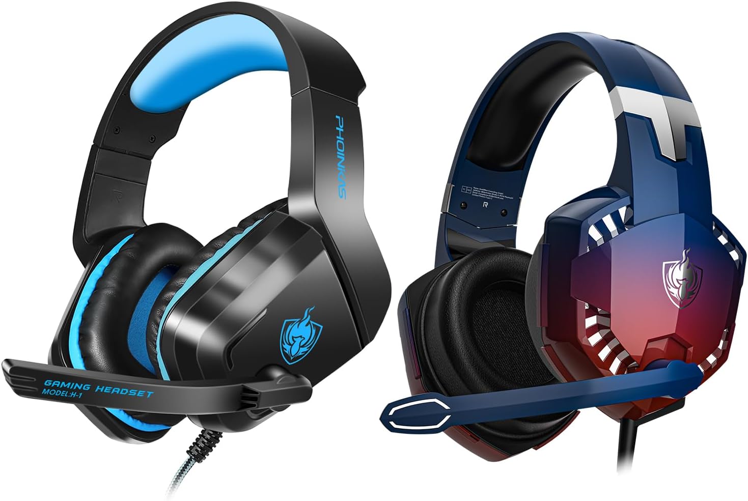PHOINIKAS PC Gaming Headset for PS4, Gaming Stereo Headphones for PS5 PC Switch Xbox One, with Noise Cancelling Mic, Surround Sound (2Pcs)