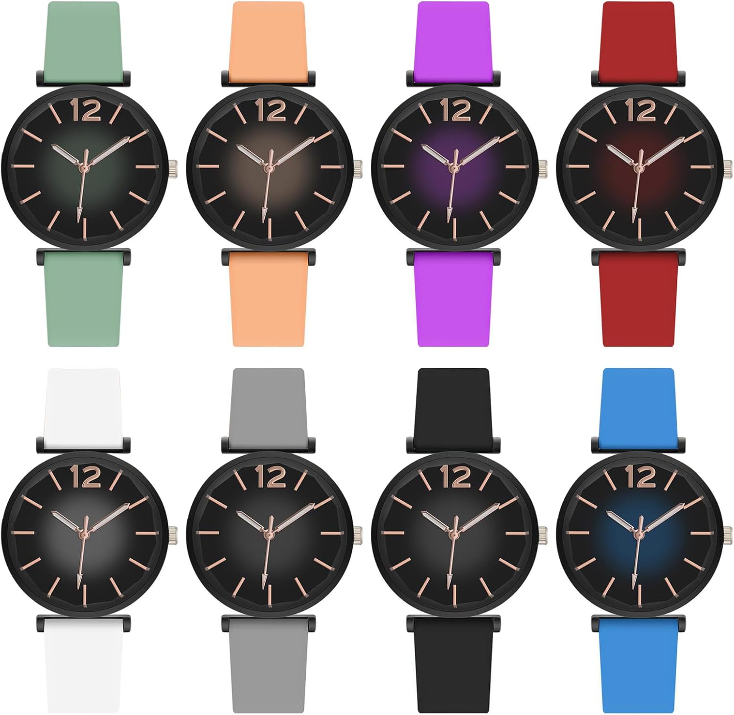 8 Pack Unisex Watch Easy to Read Watches Large Face Minimalist Ultra Thin Silicone Band Casual Quartz Sport Wrist Watch Women Men Wholesales