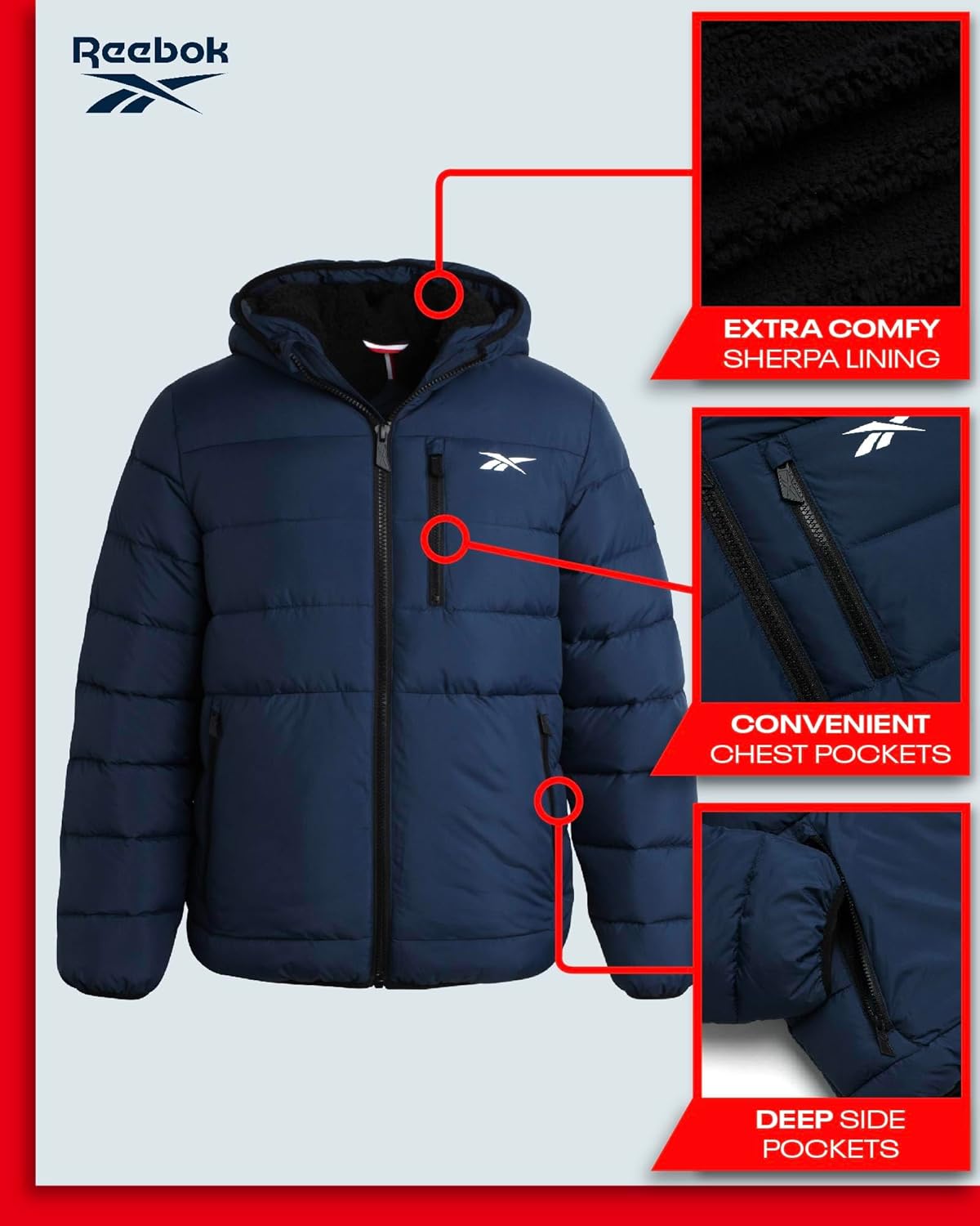 Reebok Mens Winter Jacket - Heavyweight Sherpa Lined Puffer Parka Mens Winter Coat - Insulated Quilted Ski Jacket for Men