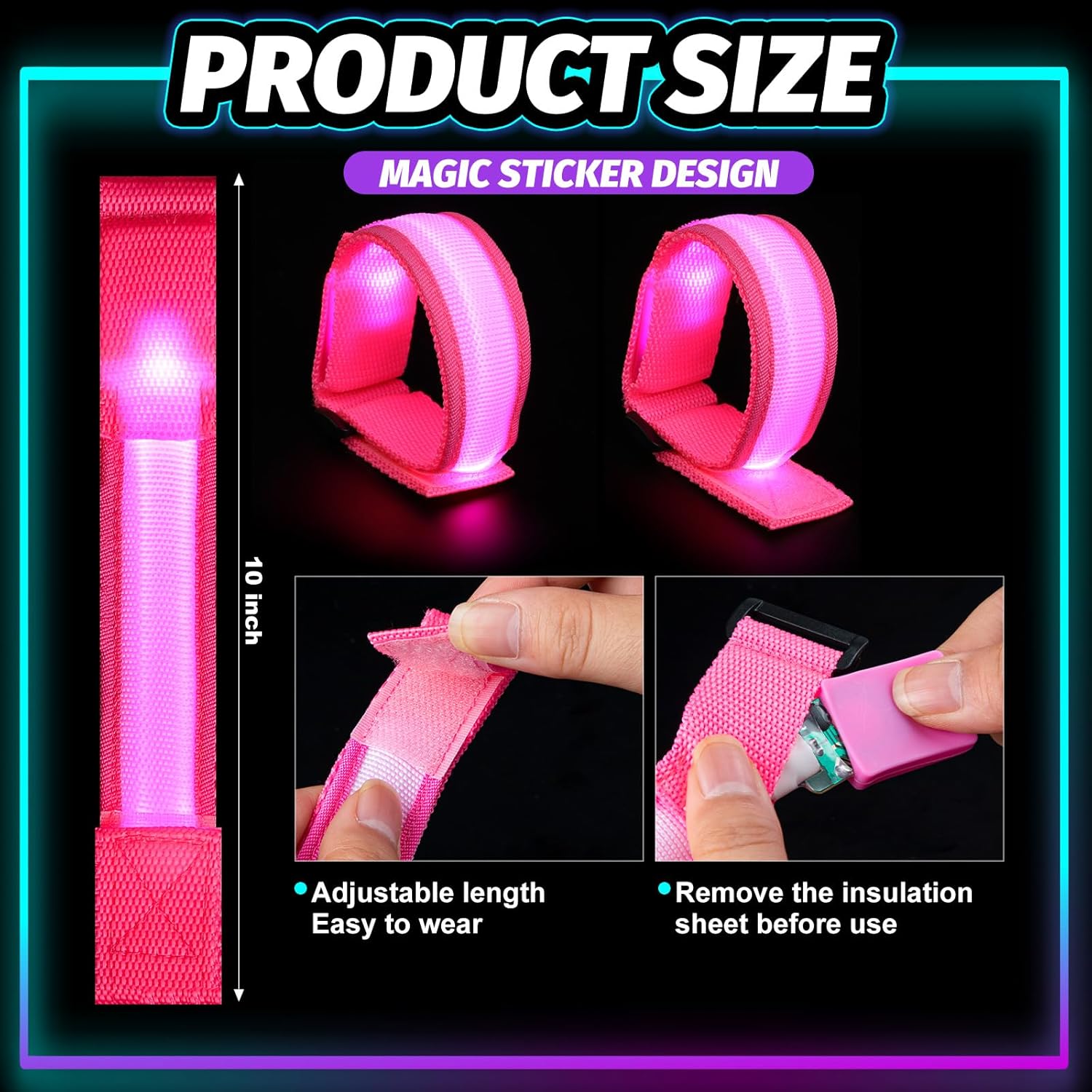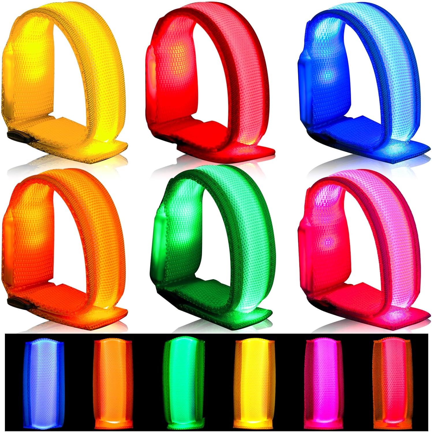 6 Pcs Led Glow Wrist Bracelets, LED Glow Flashing Arm Wrist Bands, Light Up Wrist Bracelets Bands Party Favors Supplies for Night Events Halloween Christmas Festivals Party