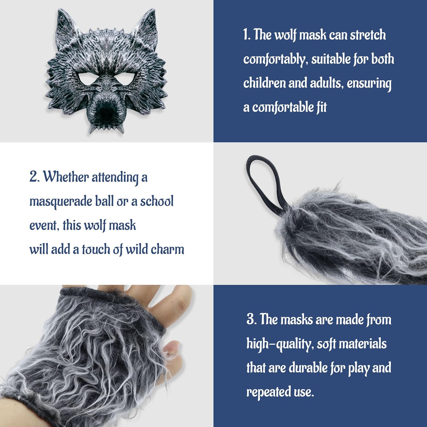 D-Fokes 4PCS Werewolf Costume Set, Realistic Wolf Mask, Gloves and Tail, Big Bad Wolf Costume for Adults