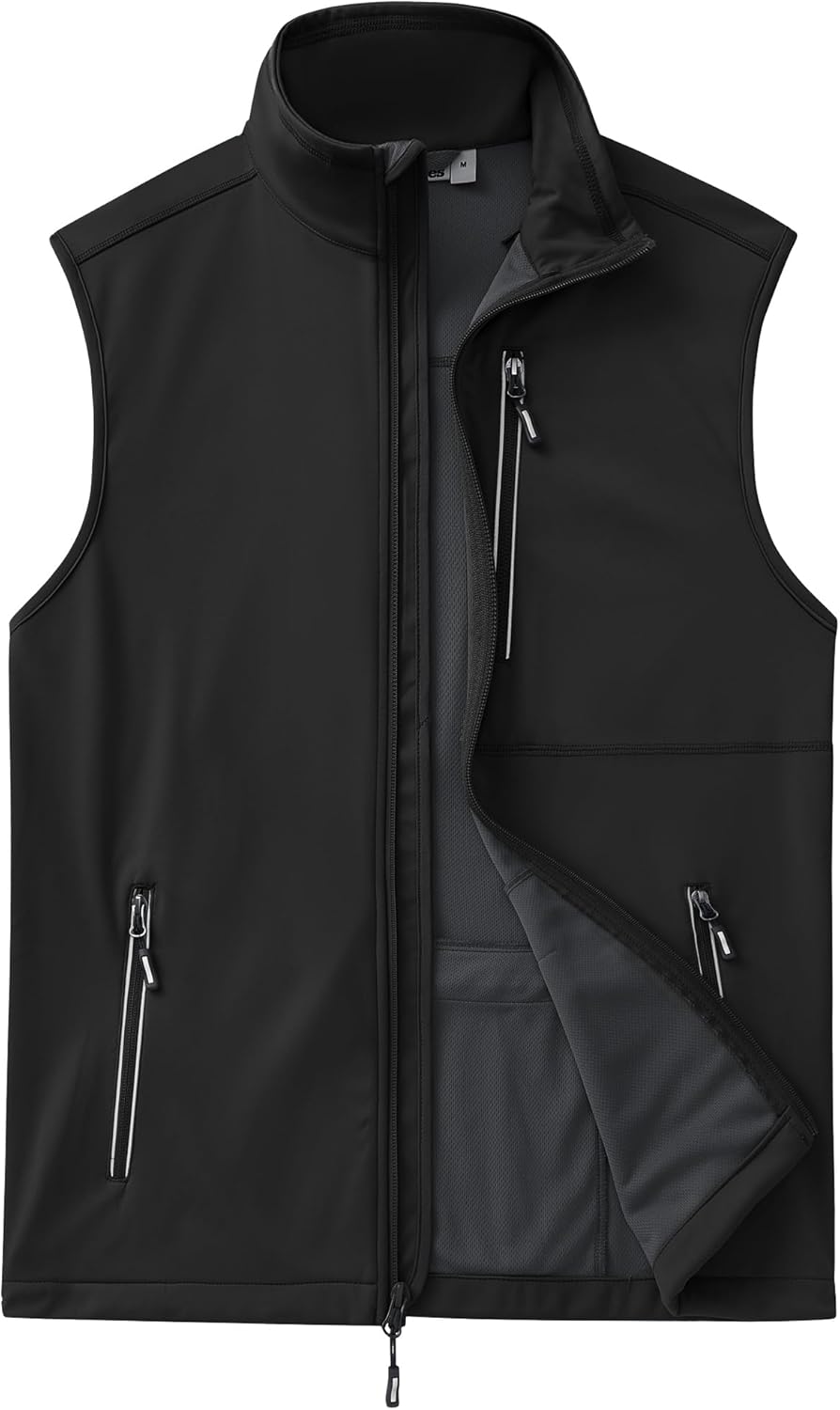 Outdoor Ventures Men's Windproof Softshell Vest Outerwear Lightweight Sleeveless Jacket for Running Golf Hiking Travel