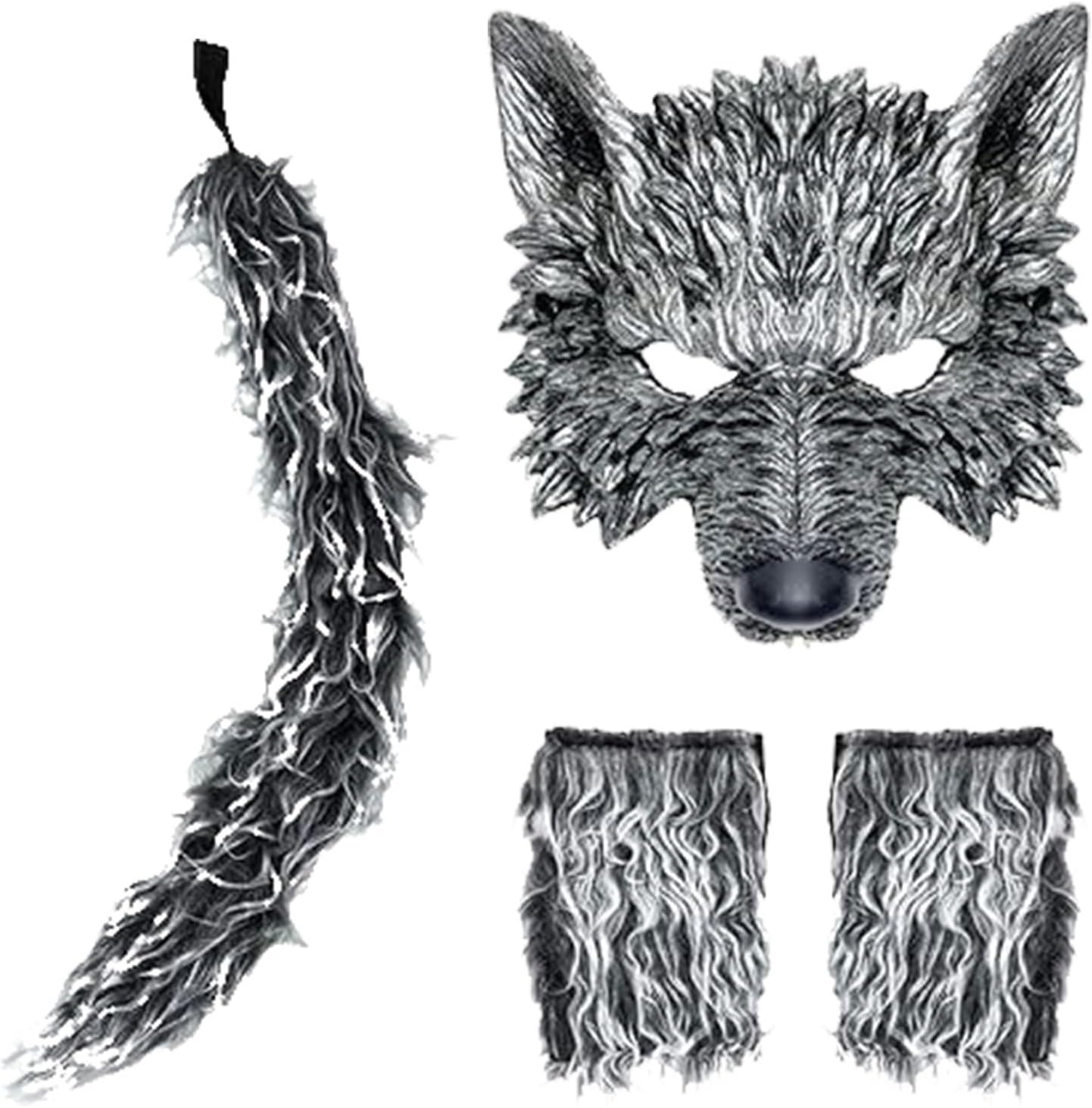 Werewolf Wolf Costume Wolf Mask with Wolf Tail and Gloves Halloween Wolf Mask Gloves and Tails Set for Women Men, Costume Party Gift for Werewolf Enthusiasts