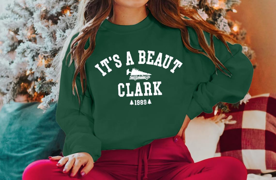 ASTANFY Christmas Sweatshirts Women It's a Beaut Clark Sweatshirt Funny Christmas Tree Pullover Lightweight Shirt