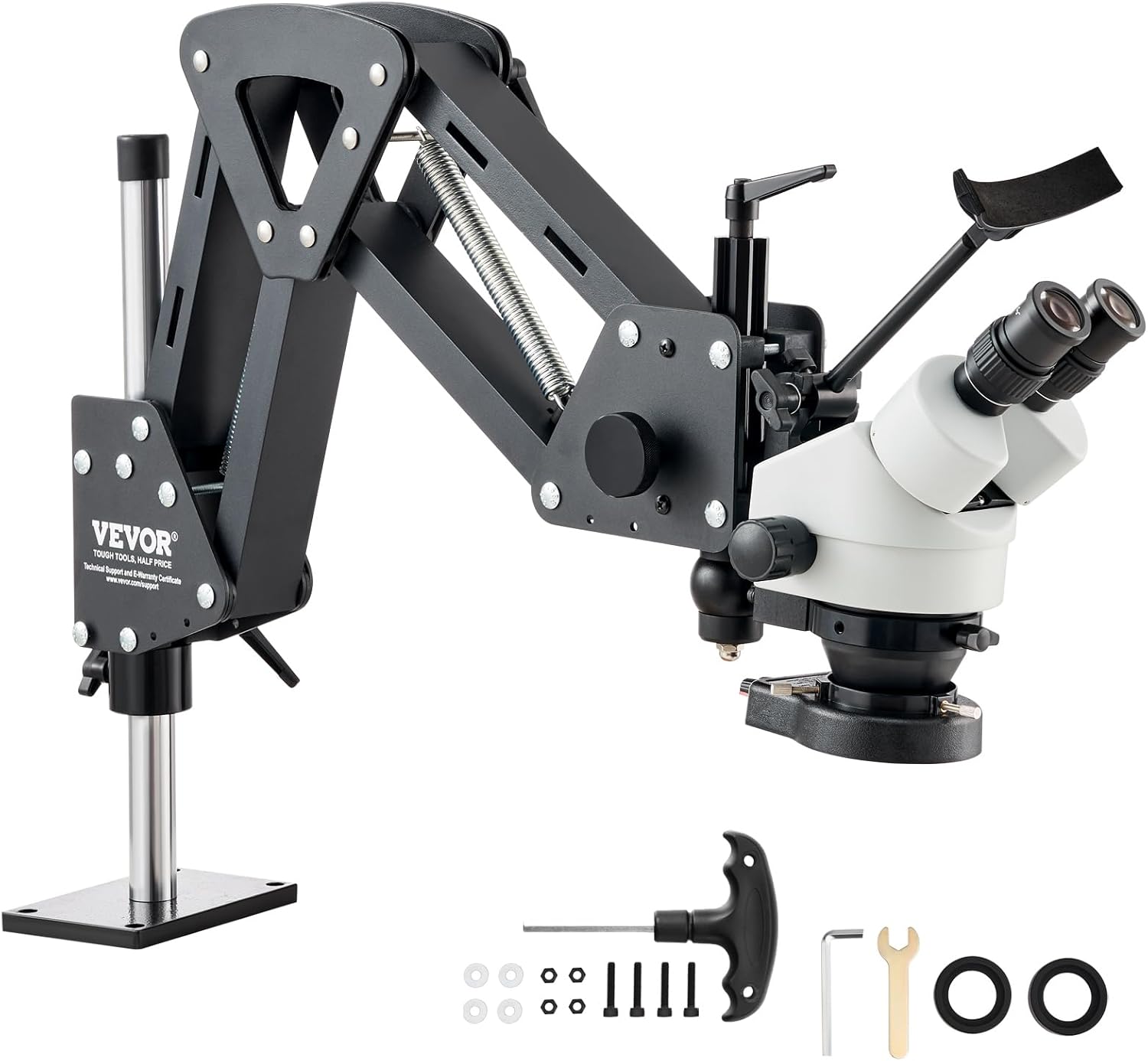VEVOR Multi-Directional Microscope with Spring Bracket, 7X-45X Magnification Jewelry Microscope, Micro Jewelry Inlaid Stand with Integrated USB Ring LED Light, for Jewelers Inlay