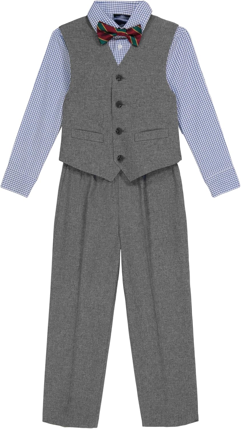 Tommy Hilfiger Boys 4-Piece Formal Suit Vest Set, Includes Dress Shirt, Dress Pants, Vest & Tie
