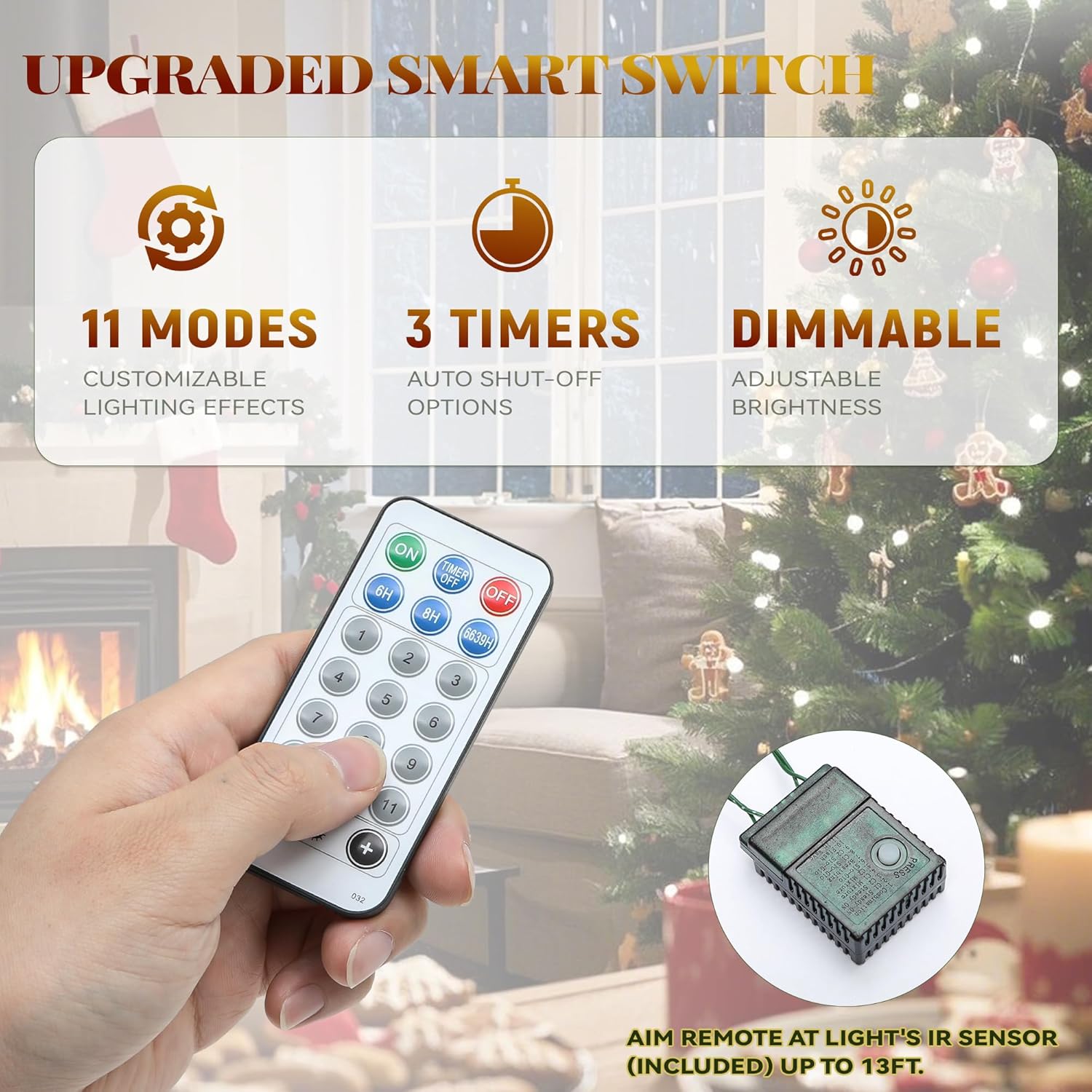 2 Light Colors & 11 Modes WIth Remote Control: This artificial hinged Christmas tree comes with 250 pre-installed lights, providing a convenient and quick setup; Easily adjust the lights, modes, and brightness of your Christmas tree with the included remote. Simply aim at the light switch within 13 ft for effortless operation. The remote is sensitive-just click, change, and enjoy