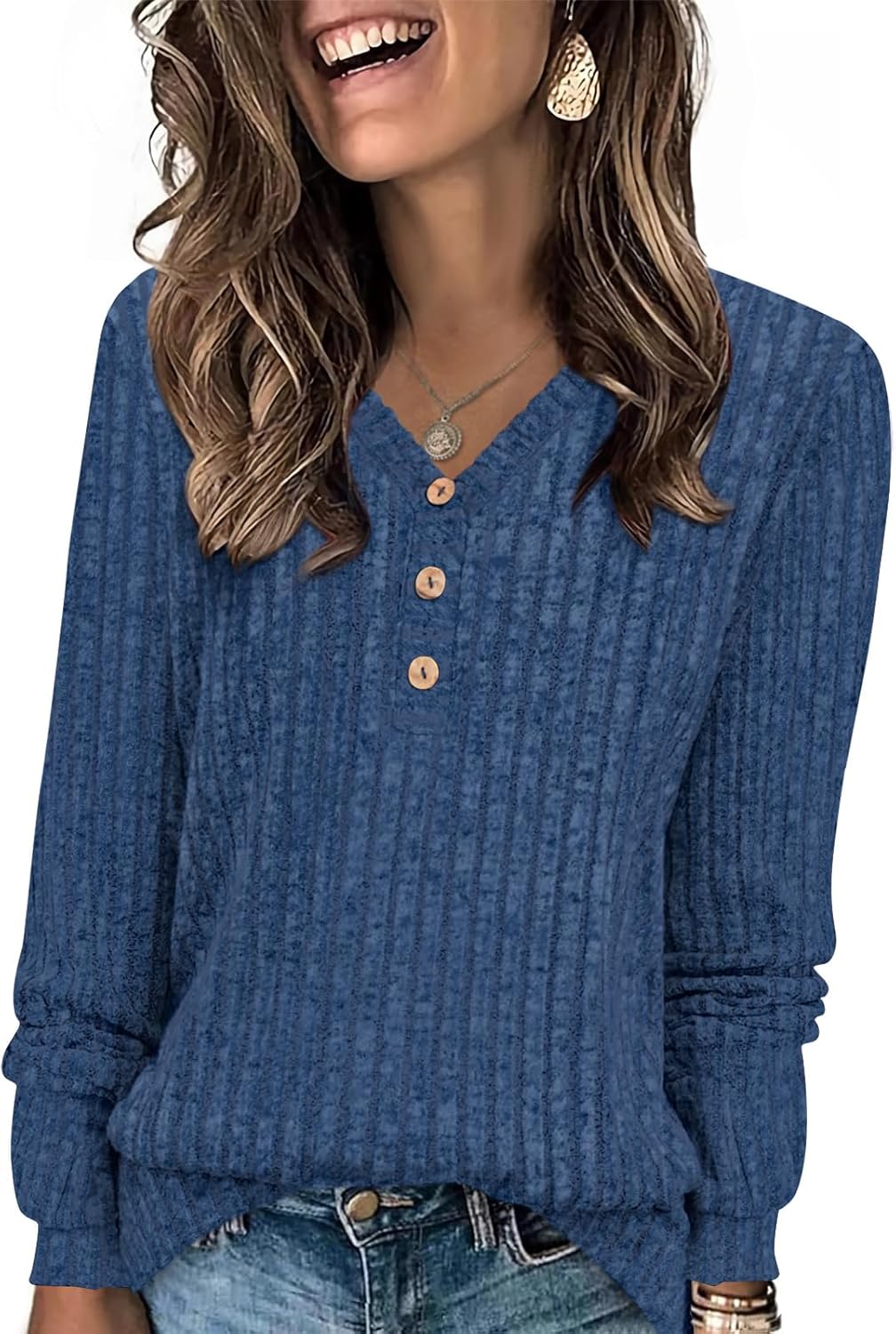 HOTGIFT Sweaters for Womens Winter Long Sleeve V Neck Shirts Casual Loose Fall Fashion Pullover Clothes