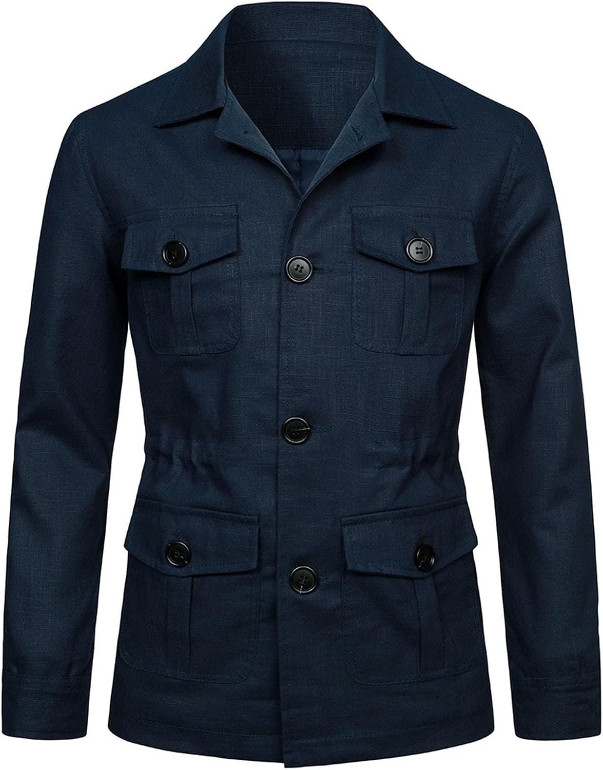 Mens Casual Linen Cargo Jackets Multi Pocket Utility Safari Jackets Lightweight Work Coats Button Down Overshirts
