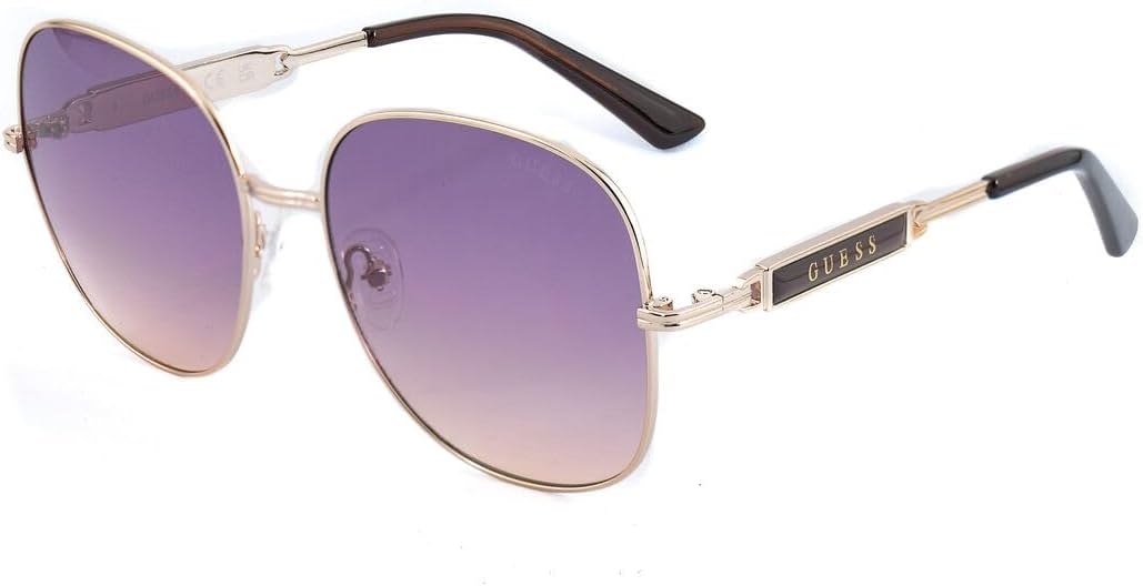 If you like to wear the latest fashion and accessories and accessories are crucial for your overall look, you should not do without the GUESS GF6190-5832T sunglasses diameter 58 mm. Sunglasses for women, Gender: Women, Protection: Protects against 100% UV rays (UV400), Lens material: Polycarbonate, Colour: Gold, Material: Metal. Features: rotating base. Lens Color: Purple Package includes: glasses case included. Bridge: 18mm Temples: 140 mm. Lenses: diameter 58 mm