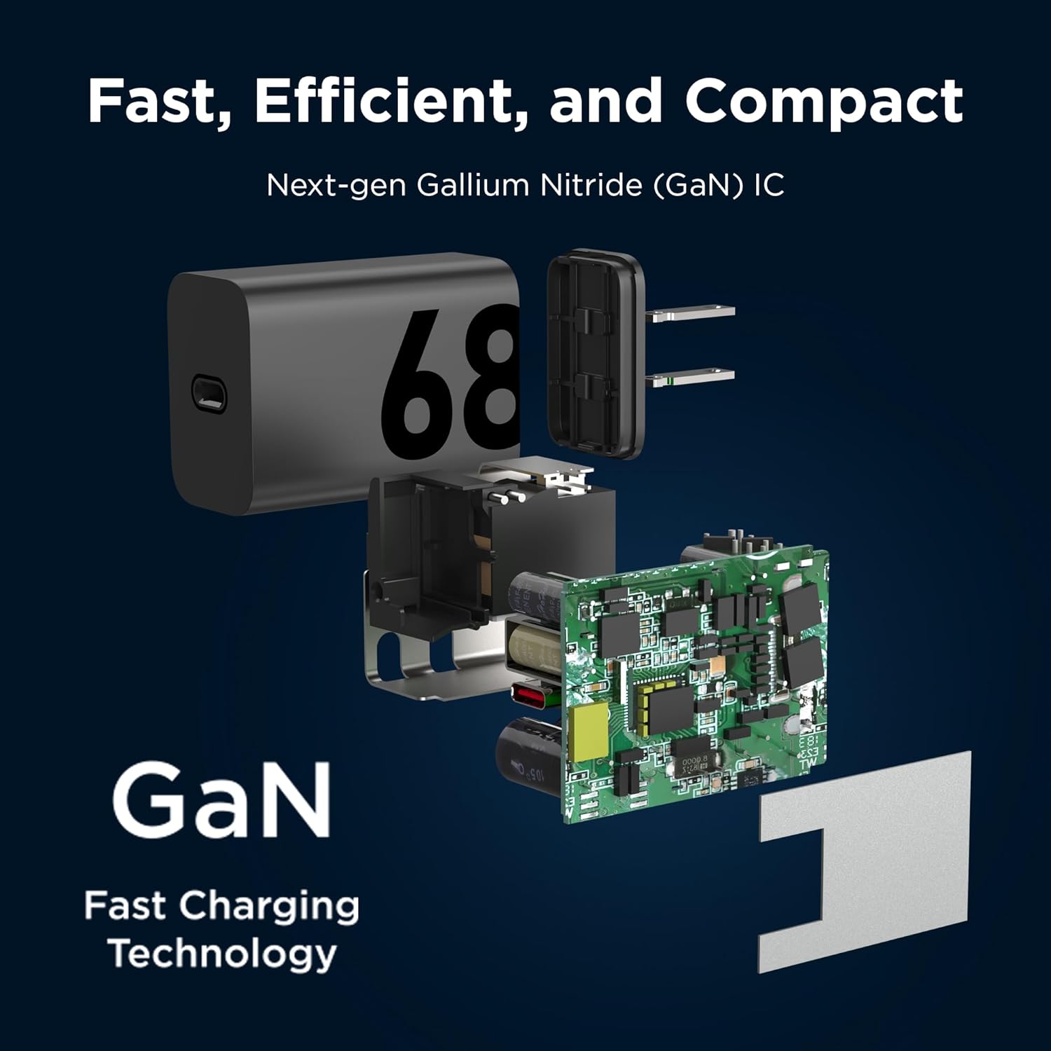 GaN Technology- Enjoy the efficiency improvements driven by Gallium Nitride (GaN) IC technology which enables massive power increases without increasing size. The 68W is super compact and portable.