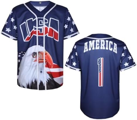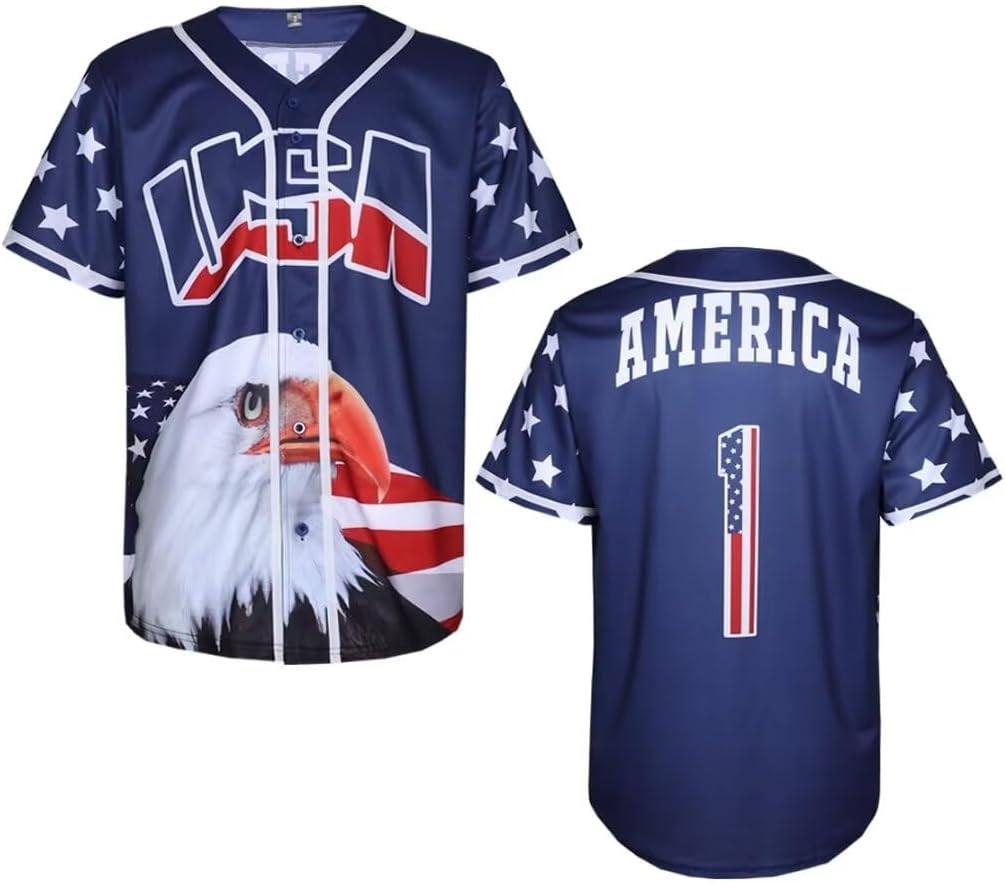 USA Baseball Jersey for Men American Flag Statue of Liberty USA Eagle America Shirts Sports Uniform