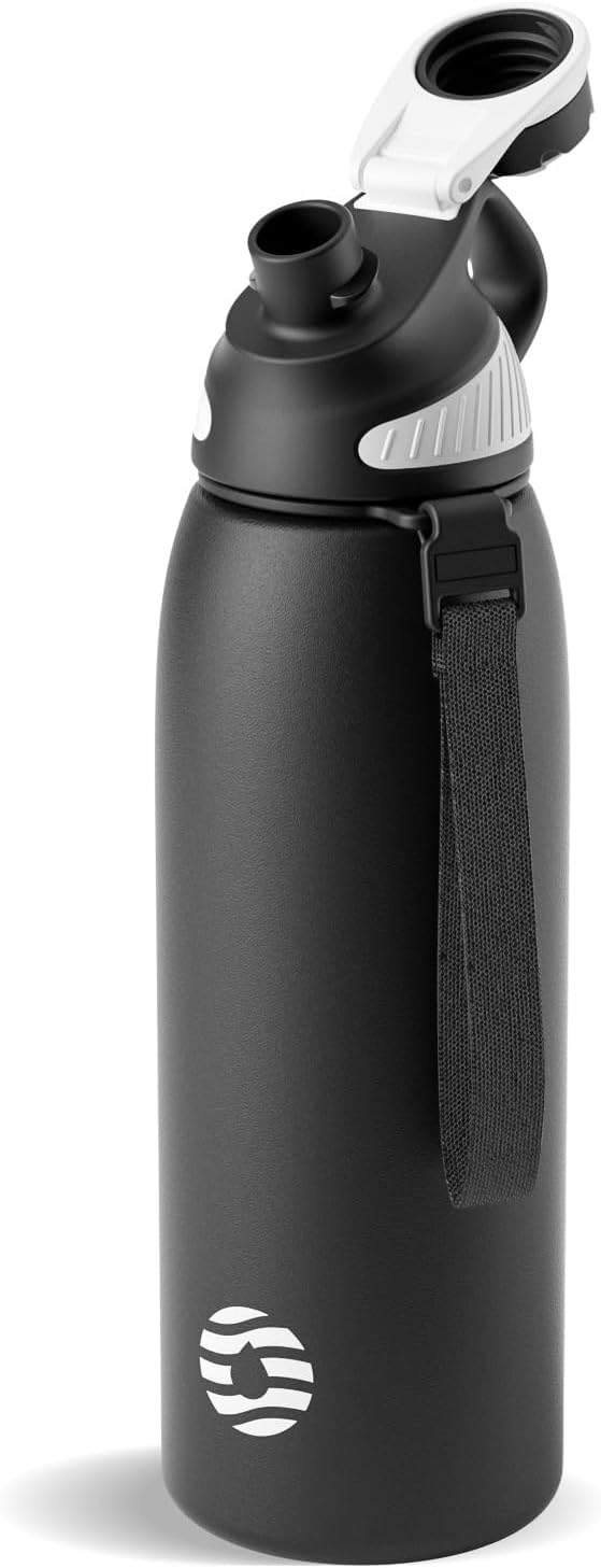 Double-Wall Vacuum Insulation Leak-Proof Bottle: With a food-grade stainless steel double-wall design, sweat-proof insulation, this water bottle keeps hot drinks like coffee or tea warm for up to 12 hours and cold drinks insulated for up to 24 hours. 100% leak-proof when closed, allowing you to confidently stash it in your backpack.