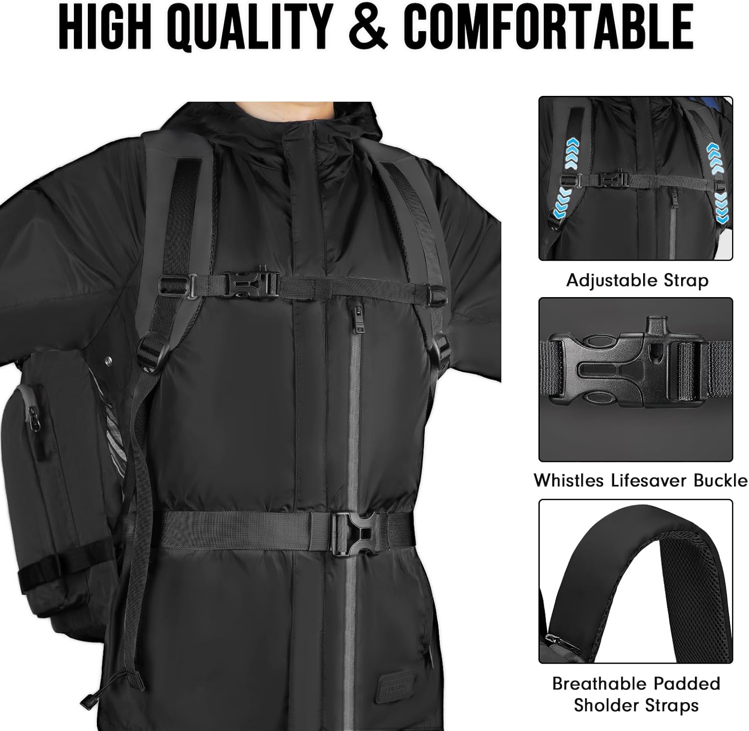 Friendly User Design: The backpack straps with reinforcement stitching is convenient for making it into the ski lodge; The addition of the waist belt and chest strap is adjustable to in optimal locations as it helps distribute the weight when fully loaded; The chest strap of this ski backpack has a lifesaving whistle that help in cases of an emergency; The waist belt of this ski bag for air travel comes with a sturdy large buckle, helping you make the skate bag fit you better by adjusting