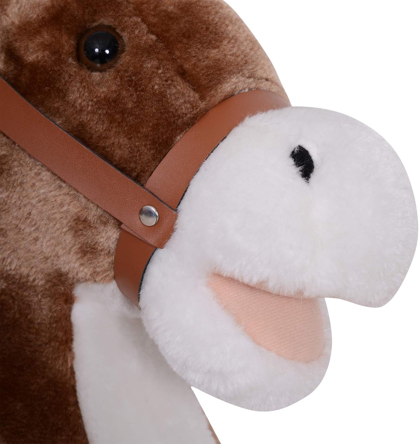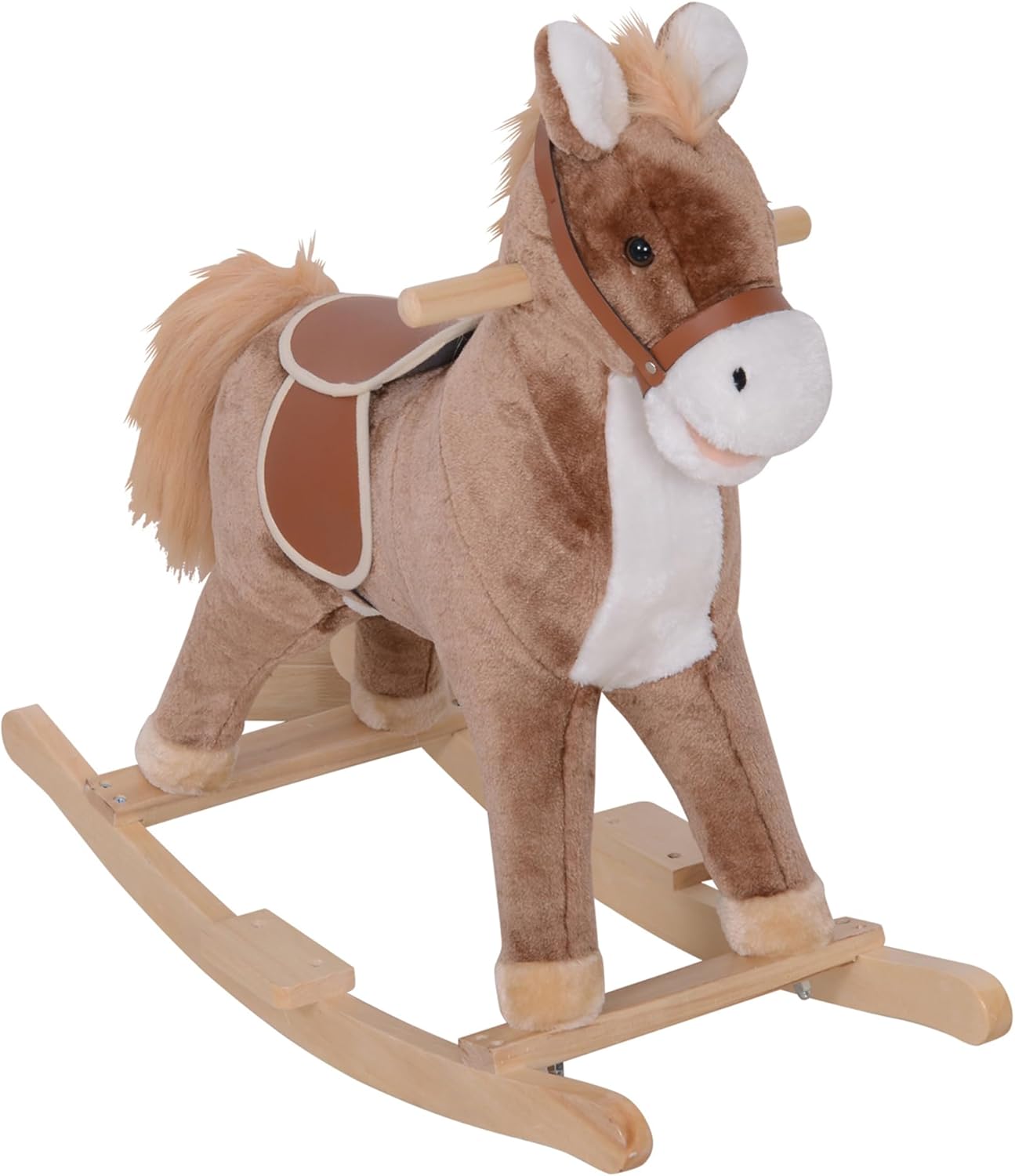 Qaba Kids Rocking Horse, Ride on Horse for Toddlers with Soft Plush Body, Wooden Base & Handle Grip for 3+ Year Old Boys and Girls, Brown