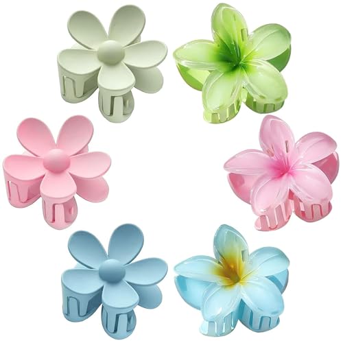 6PCS Flower Hair Clips for Women, Cute Flower Claw Clips for Thick Hair&Thin Hair, Non-slip Hawaiian Beach Accessories, Hair Claw Clips for Women Girls