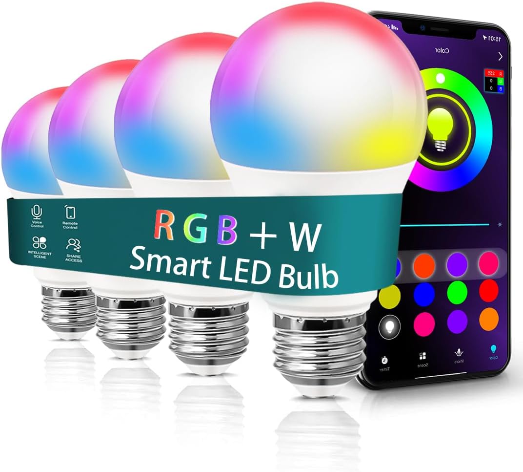 Smart Light Bulbs for Bedroom,BT Light Bulbs with AppControl RGB+Daylight (5000K) LED Color Changing Bulbs,Dimmable Music Sync,A19 E26/9W,4 Pack(Don't Support Alexa/Google/WiFi) Christmas