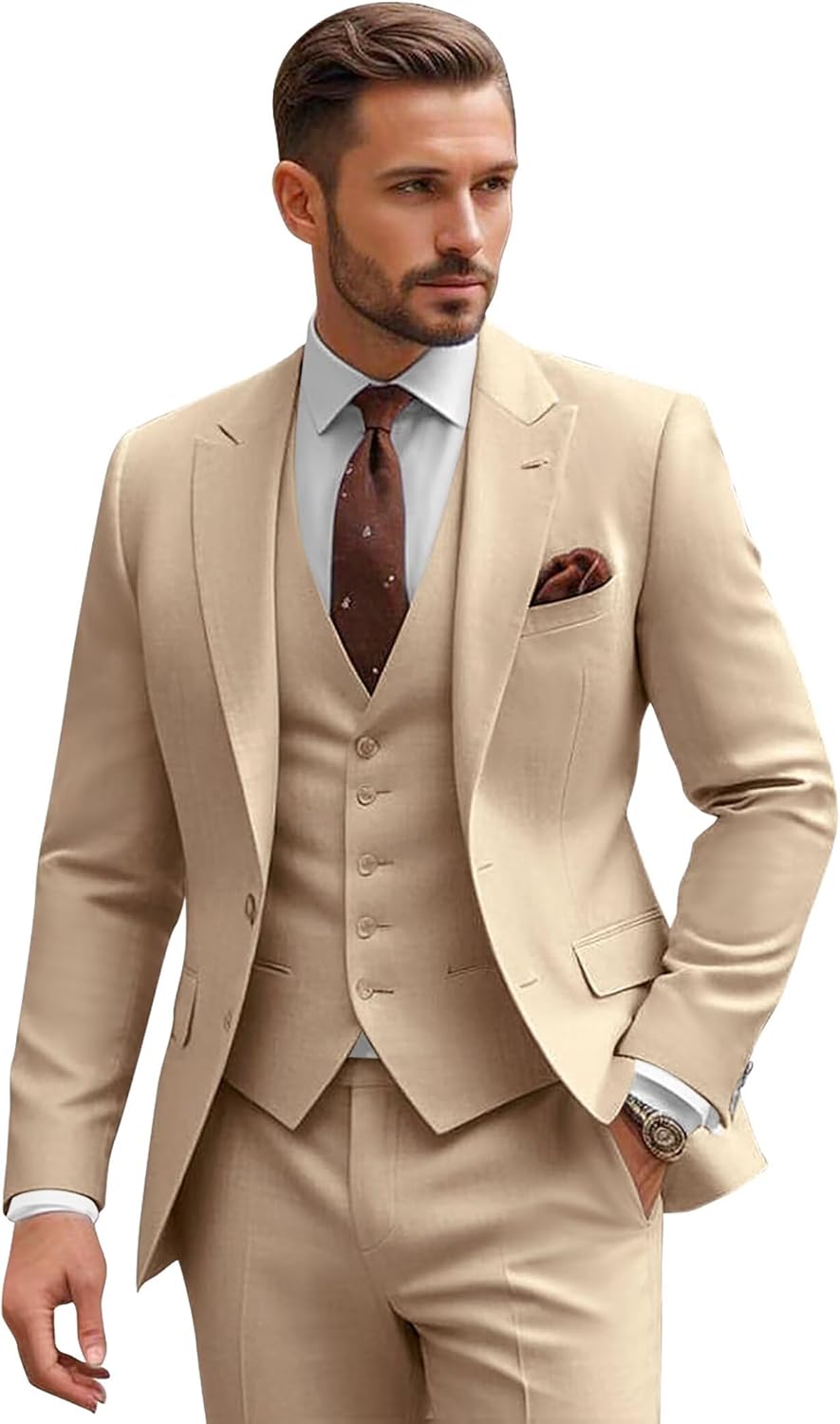 3 Piece Suits for Men Wedding Slim Fit Man Suit Sets Single Breasted Two Button Peak Lapel Blazer Vest Pants Set