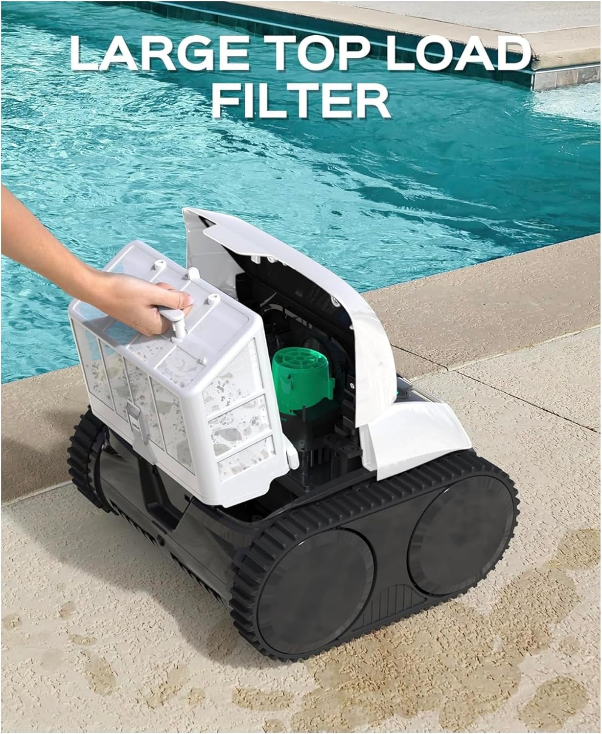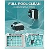 Tiempo de Funcionamiento Largo y Carga Rápida: La batería de litio mejorada admite hasta 130 minutos de limpieza continua con carga completa y se recarga en solo alrededor de 3 horas. Ideal para piscinas enterradas de hasta 1,600 pies cuadrados y una profundidad de agua de hasta 9.8 pies, asegurando un rendimiento ininterrumpido durante las necesidades de limpieza máximas