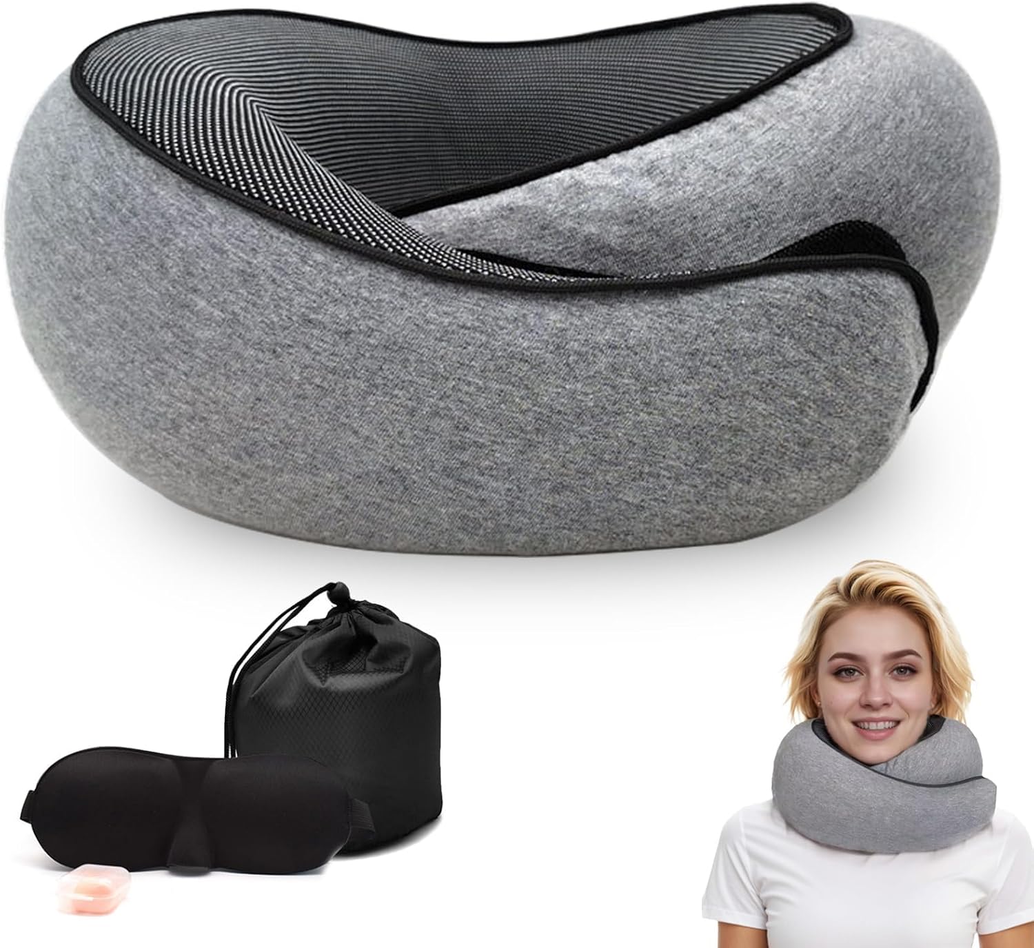 Best Space Saving Travel Partner:This memory foam travel neck pillow is designed to provide ergonomic neck support during airplane and car travel, ensuring a comfortable sleep.(Set includes: neck pillow + eye mask + earplugs + waterproof storage bag)