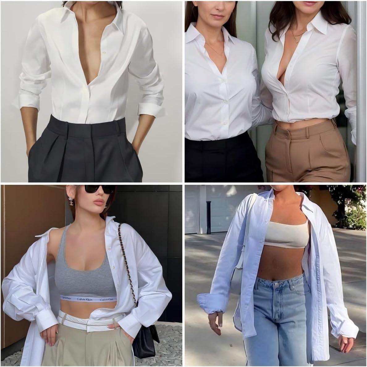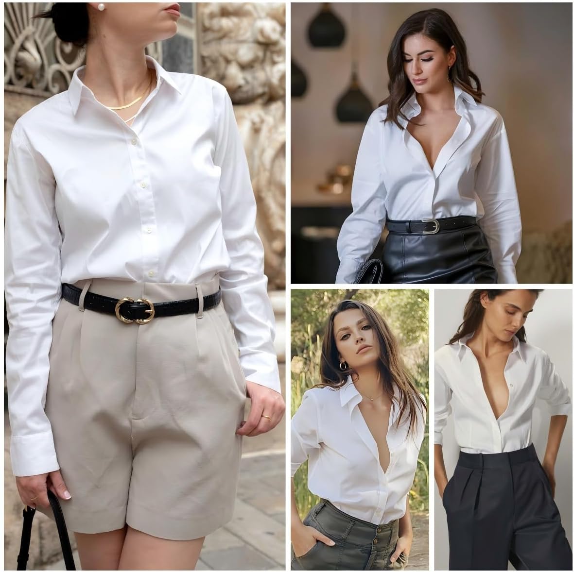 HOTOUCH Women's Button Down Shirts Long Sleeve Dress Shirt Slim Fitted Work Tops Collared Dressy Casual Business Blouses