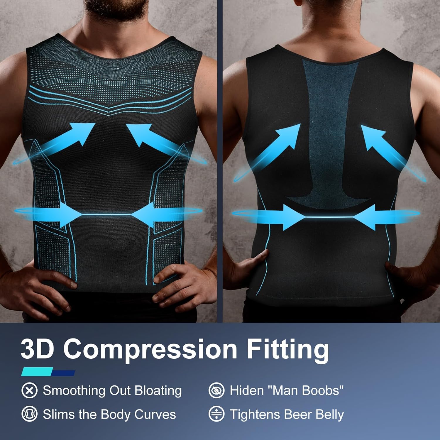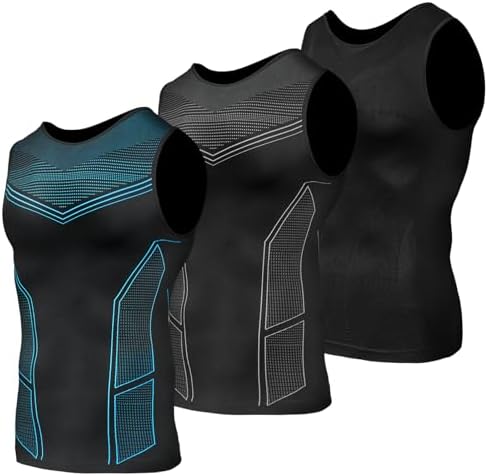 Odoland 3 Pack Men Compression Shirt, Tummy Control Slimming Undershirt Tank Top Men Body Shaper