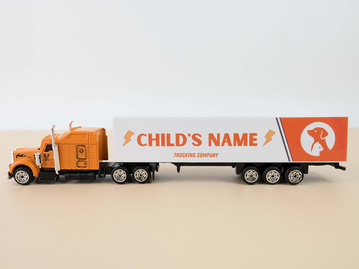 🚛Treat your child to a unique and memorable toy with their name on it! This toy semi truck and trailer is made with durable materials, allowing it to be driven on any surface. Its free-turning parts and detachable tractor and trailer make it a great choice for imaginative play. Let your child explore the world with this special truck!