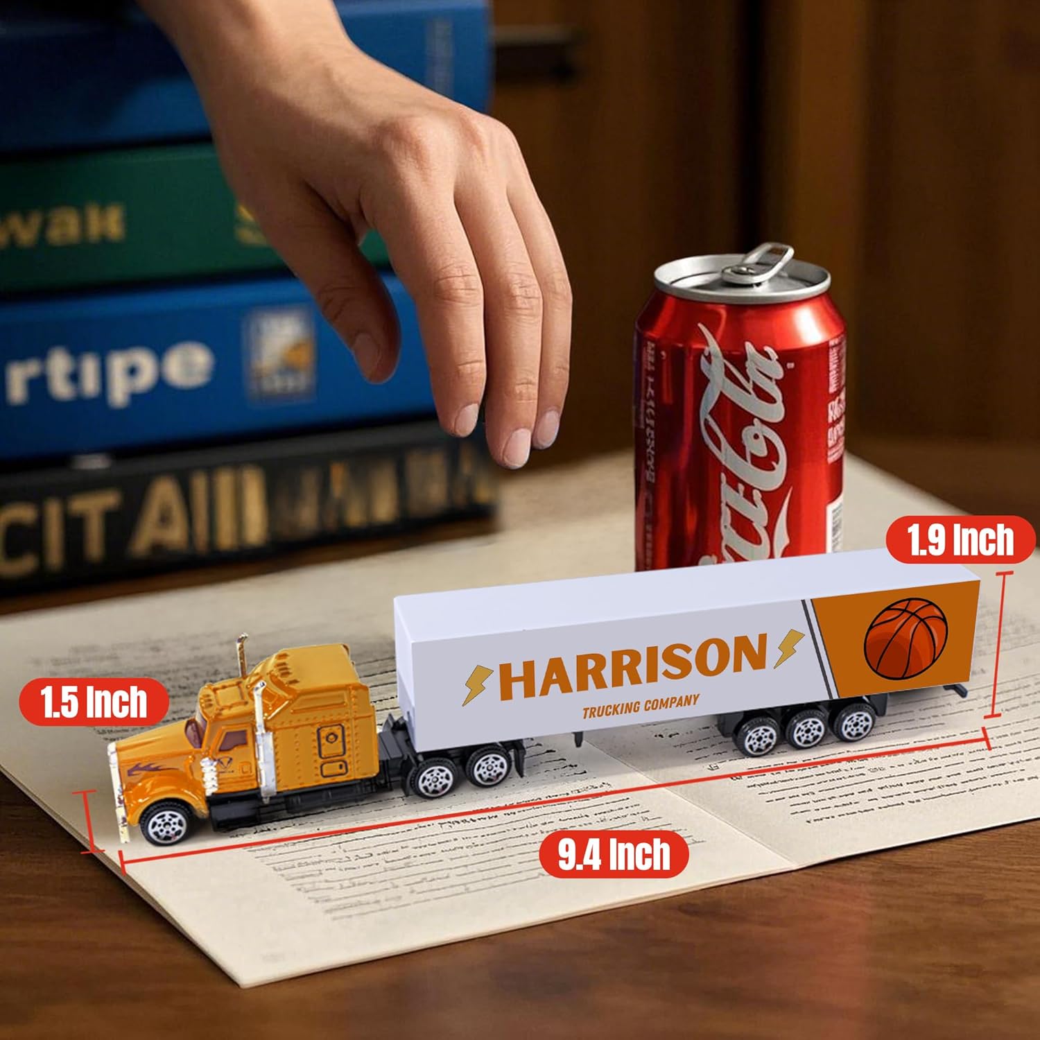 MT WORLD Personalized Toy Truck with Name Custom Semi Truck Toy Tonka Container Car Carrier 1:64 Scale Metal & Plastic Truck Model for Little Boys Birthday
