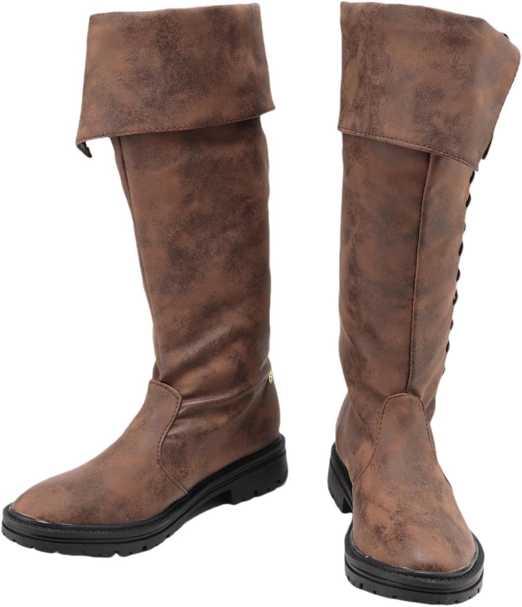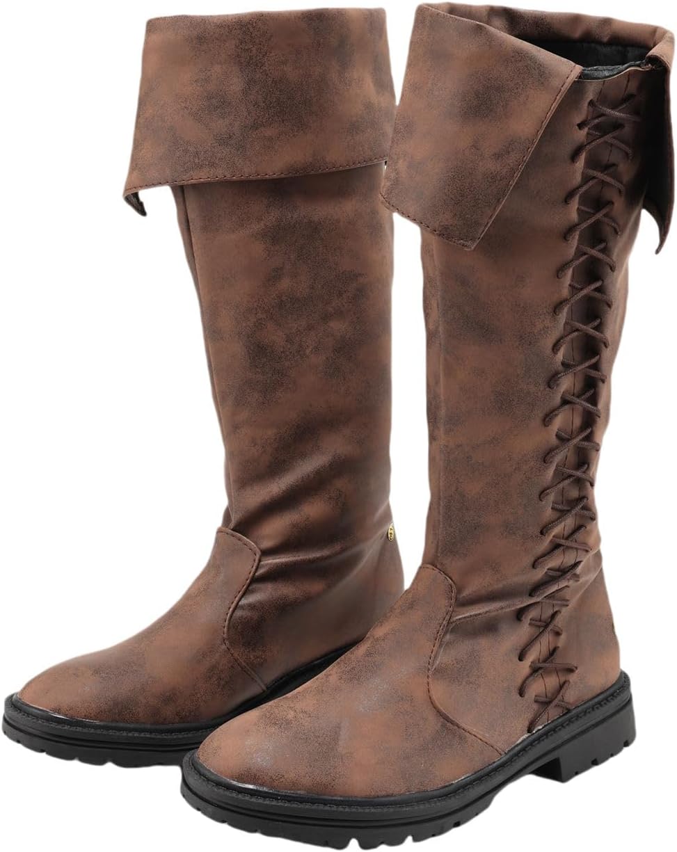 Mens Medieval Boots Renaissance Viking Lace-up Long Boot for Halloween Party