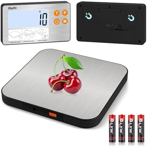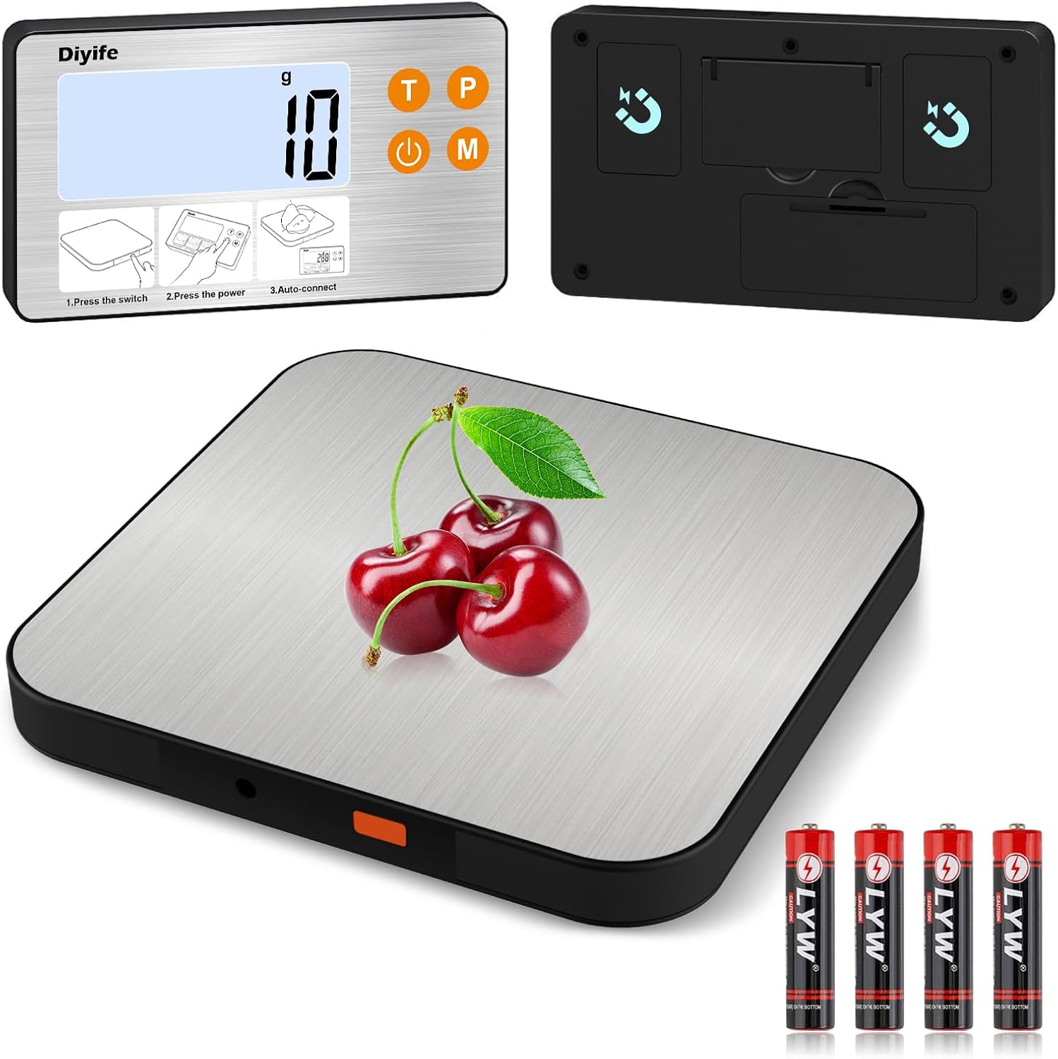 33lb/1g Kitchen Scale with Split LCD Display, Diyife Digital Food Scale, Large Magnetic Large LCD Display, 7 Units, Auto Shut-Off, Tare Function, Ultra-Slim Stainless Steel for Baking, Cooking