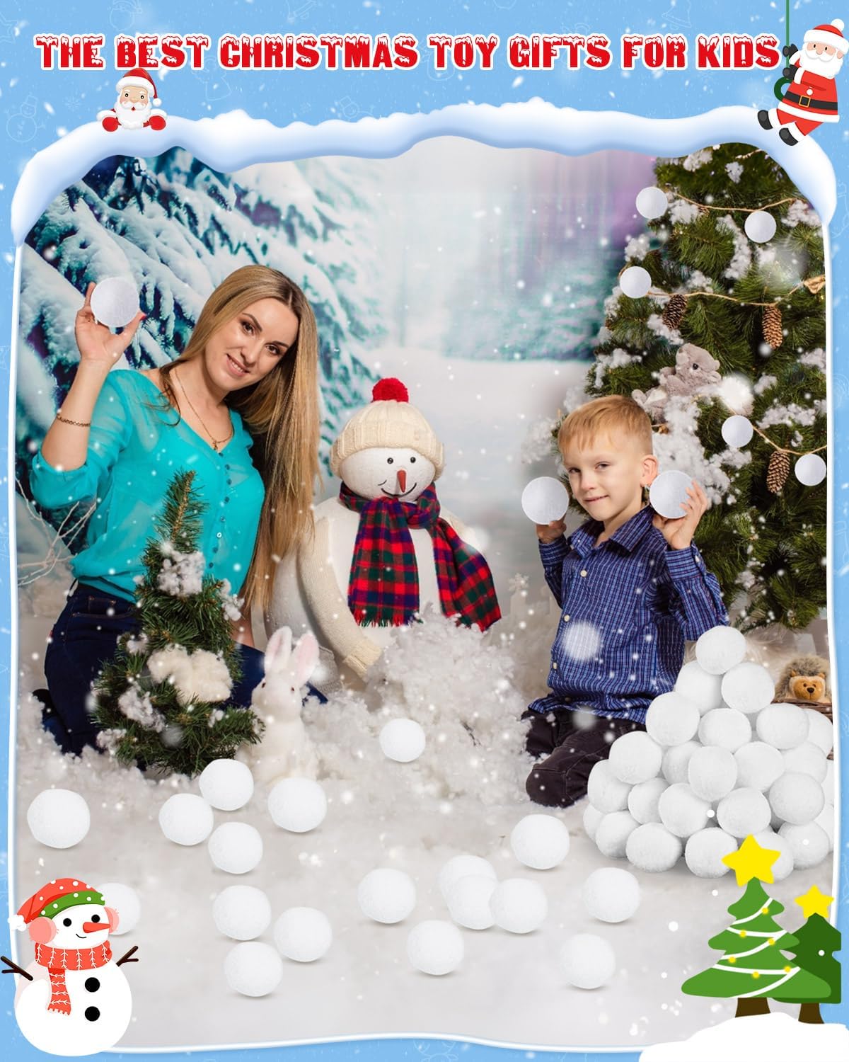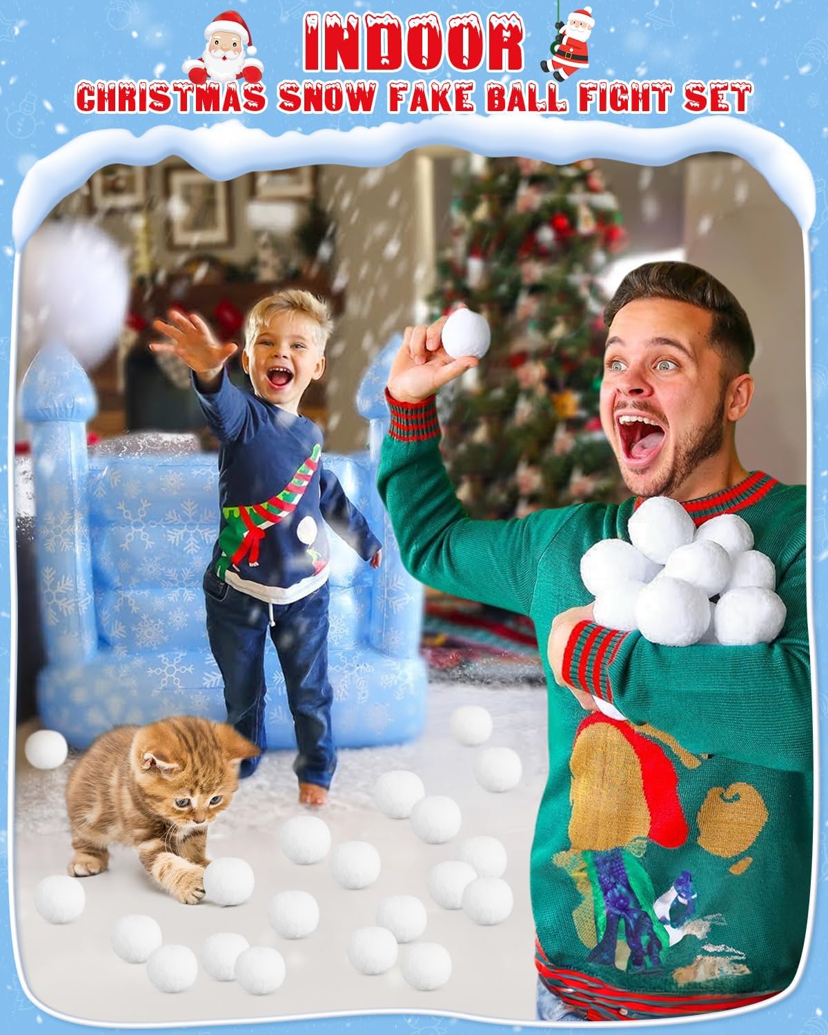 𝐒now 𝐅un 𝐀nytime, 𝐀nywhere: Enjoy instant snowball fights indoors or out with our 50-pack indoor snowball fight set! Perfectly sized at 2 inches, these soft, reusable snowballs ensure snowy play without the cold or mess. Ideal for Christmas activities for kids and family bonding during the holidays.