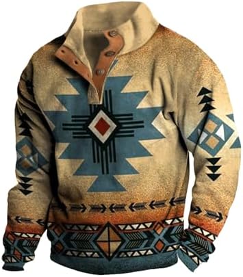 Western Sweatshirts for Men Aztec Ethnic Print Quarter Zip Pullover Fleece Hoodies Casual Stand Collar Sweatshirt
