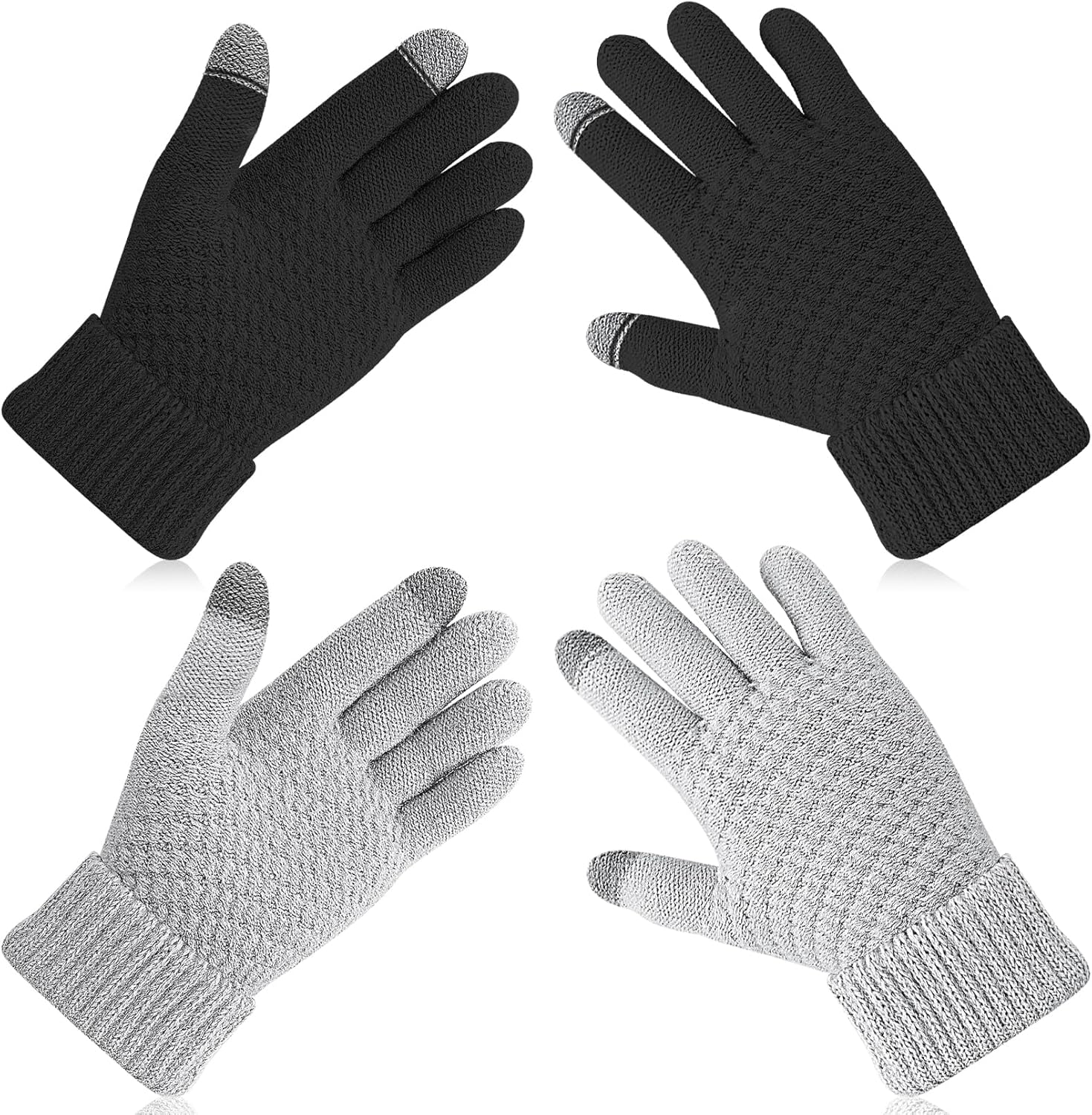 2 Pairs Womens Winter Touch Screen Gloves - Warm Fleece Lined Knit Glove with Elastic Cuff for Cold Weather