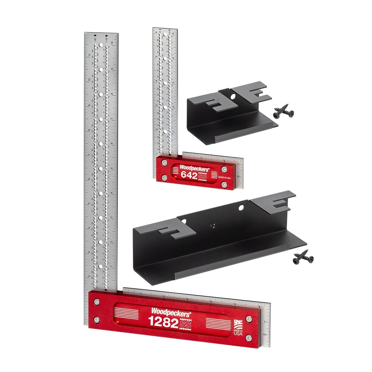 Woodpeckers Precision Woodworking Square Set, 6 Inch & 12 Inch, Stainless Steel, USA Made, Feature Packed Square, Self Standing, Scribing Notches