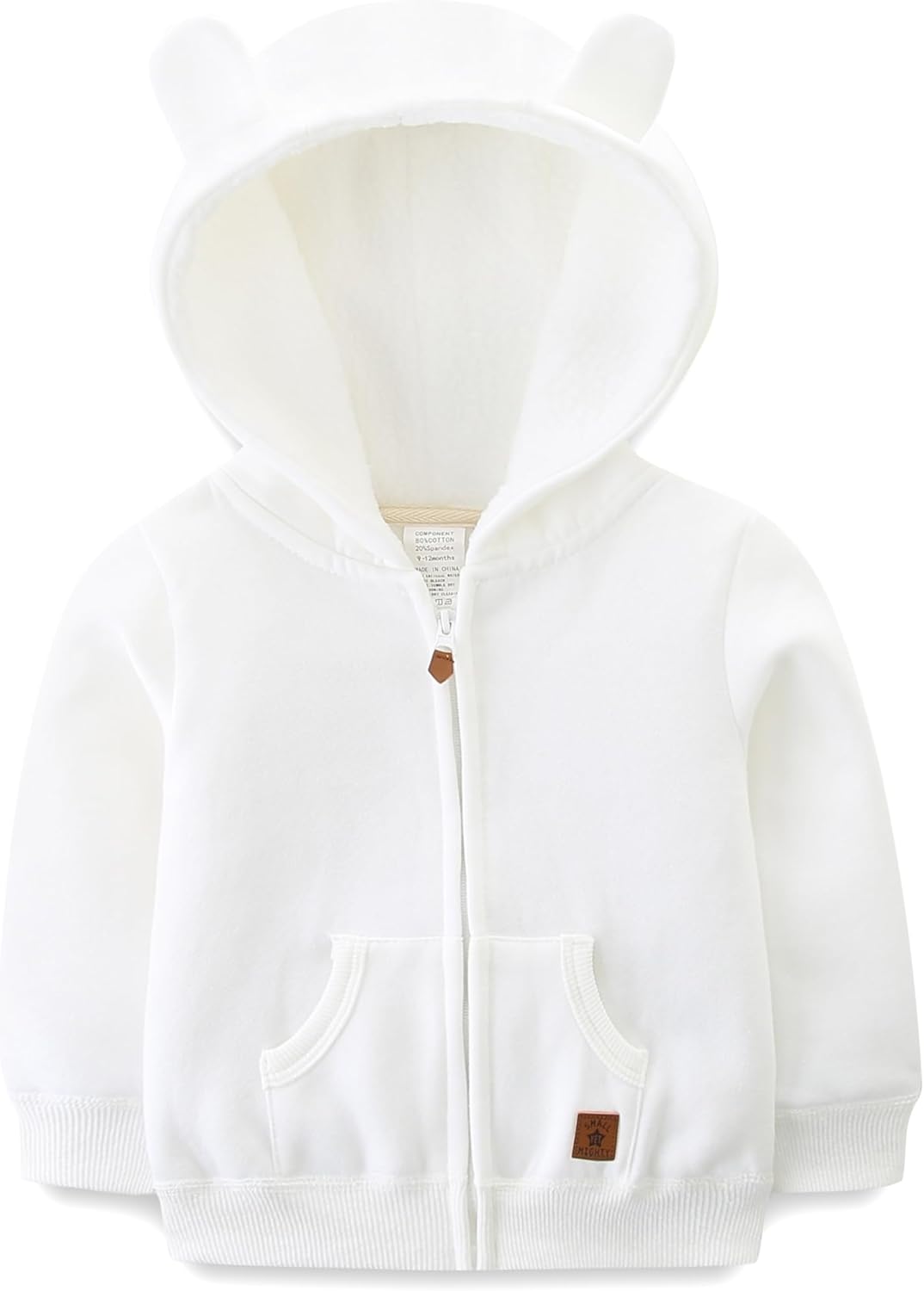 Baby Hoodie Sherpa Lined Zip up Light Fleece Jacket Solid Bear Coat Fall Winter 3-24 M