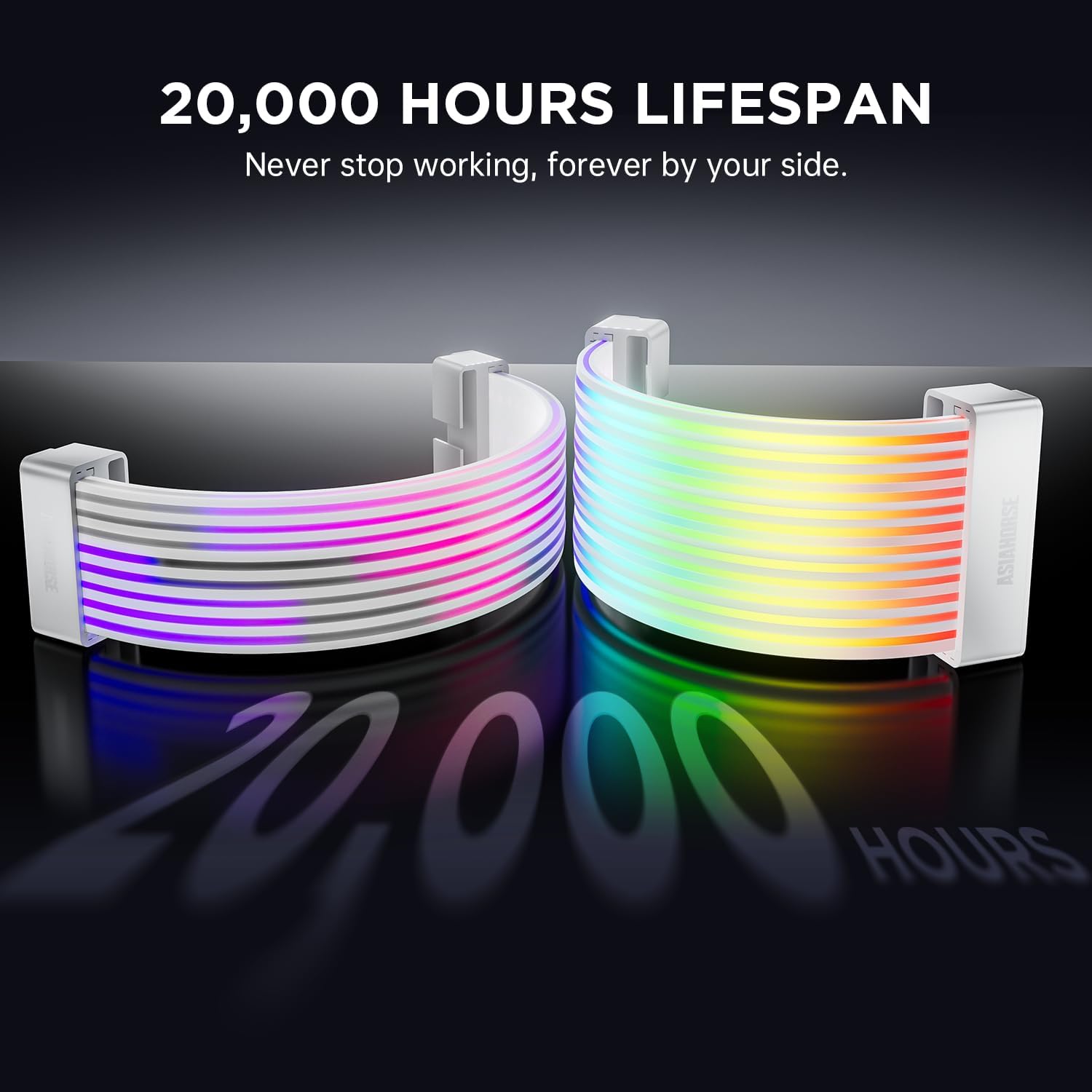 【Vida útil ultra larga de 20,000 horas】Adopta perlas LED ARGB de alta precisión y duraderas con una vida útil ultra larga de 20,000 horas, permitiendo un funcionamiento continuo sin preocuparse por el decaimiento de la luz. Disfruta del brillo duradero y el encanto interminable de la iluminación ARGB