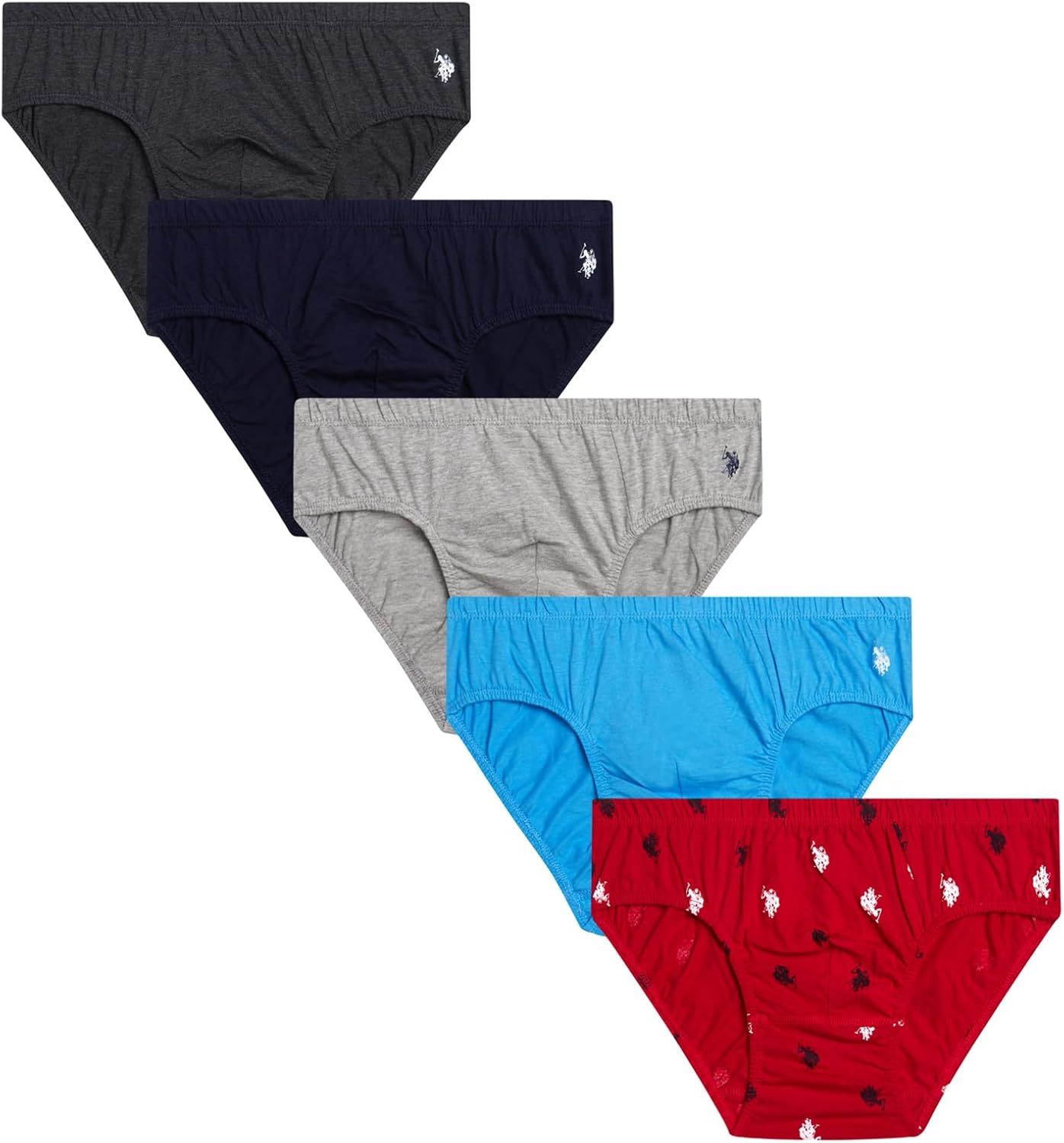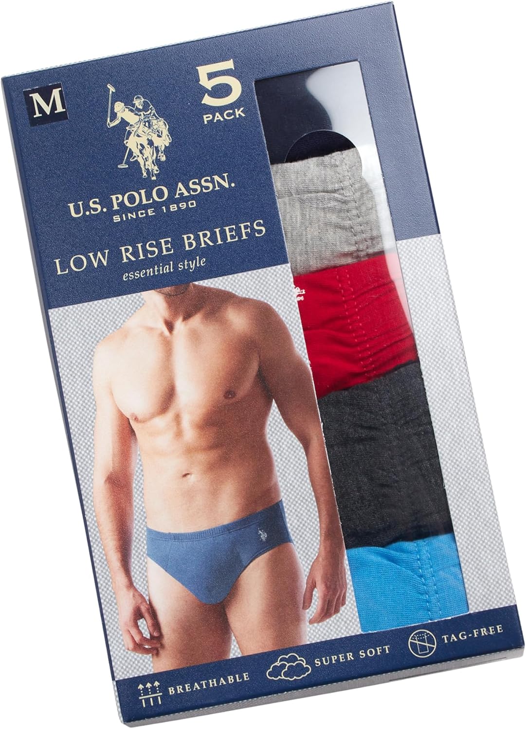 U.S. Polo Assn. Mens Underwear Briefs - 5 Pack Cotton Tag Free Low Rise Briefs Underwear for Men Pack with Contour Pouch
