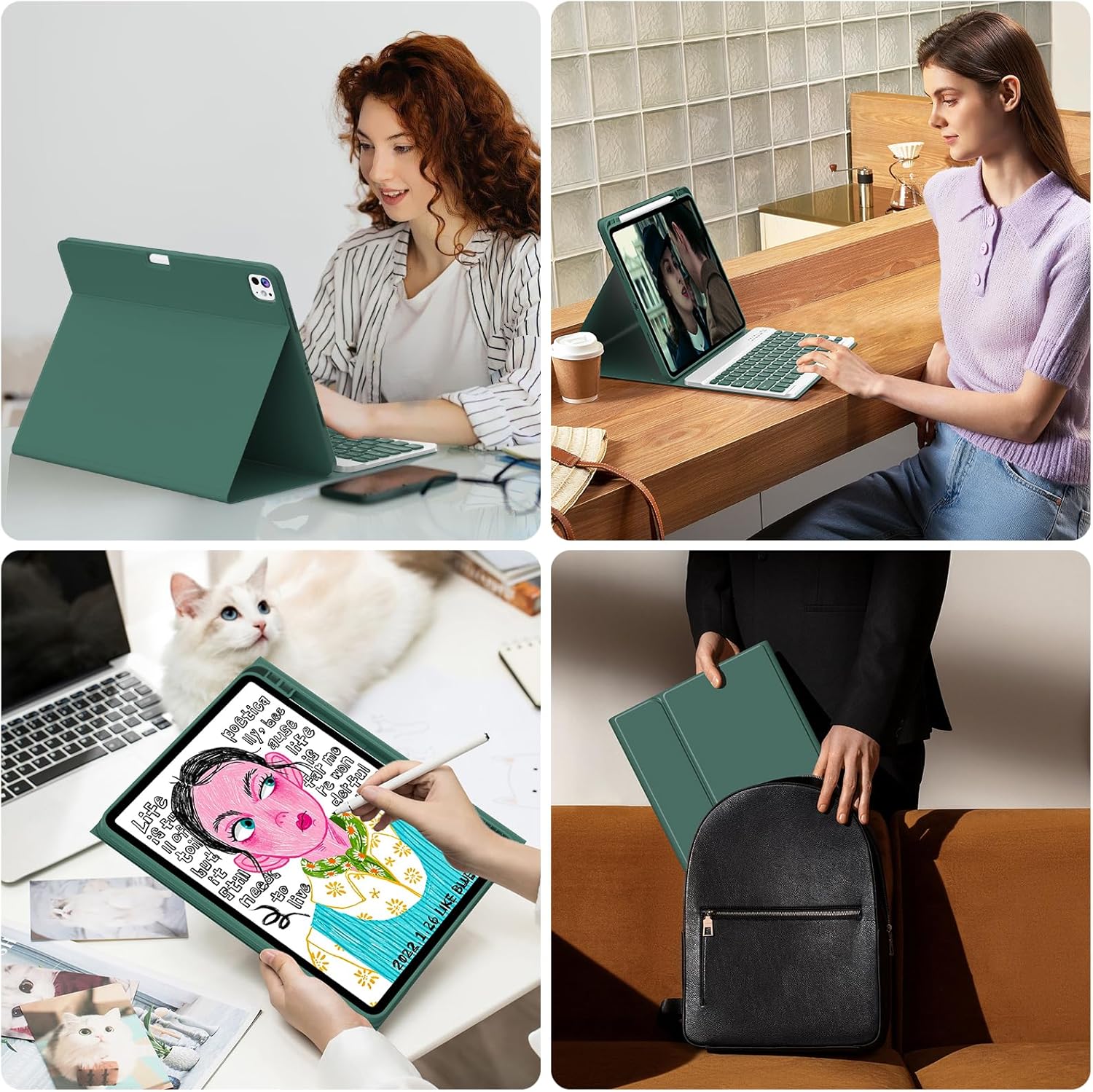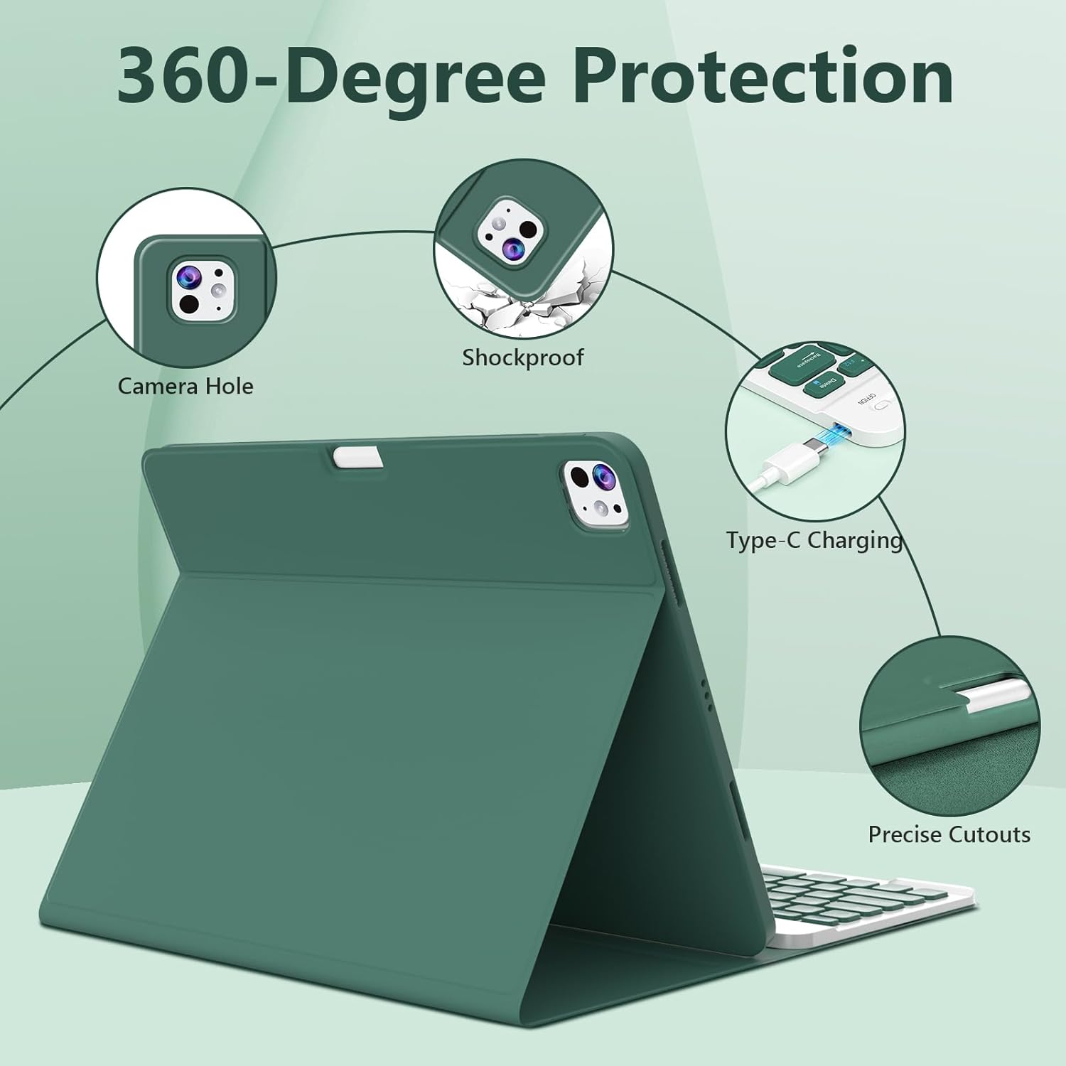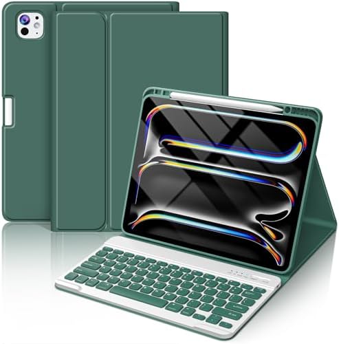 FUWANG Keyboard Case for iPad Pro 13 inch (M4) 2024, Magnetic Detachable Colorful Keys for iPad Pro 13 inch Case with Keyboard, Folio Cover with Pencil Holder for iPad pro 13", Auto Sleep/Wake - Green