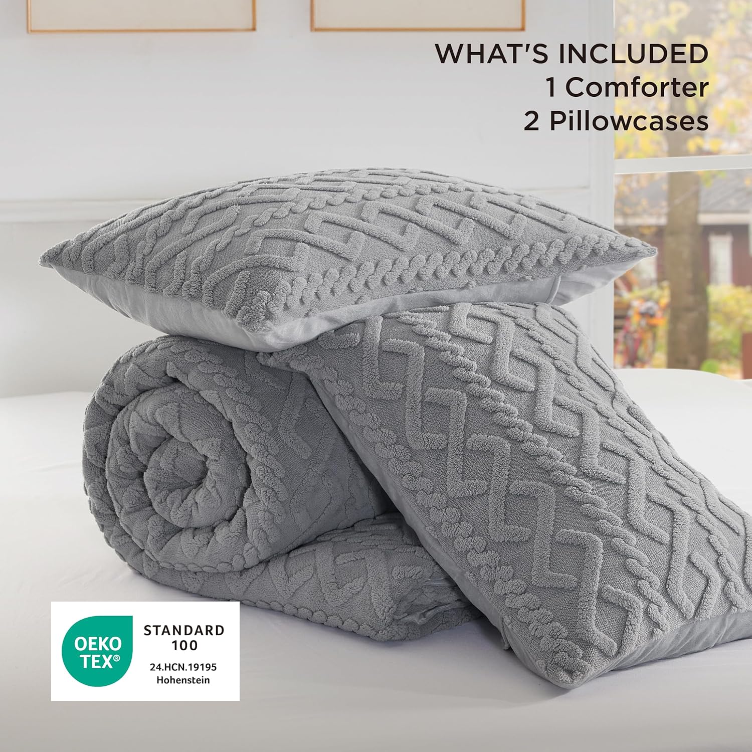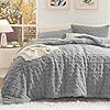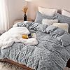 Bedsure Queen Fluffy Comforter Set, Grey Plush Fleece Bed Set, Luxury Jacquard Farmhouse Boho Soft Warm Bedding for Winter, 3 Pieces, 1 Comforter (90"x90") and 2 Pillowcases (20"x26")
