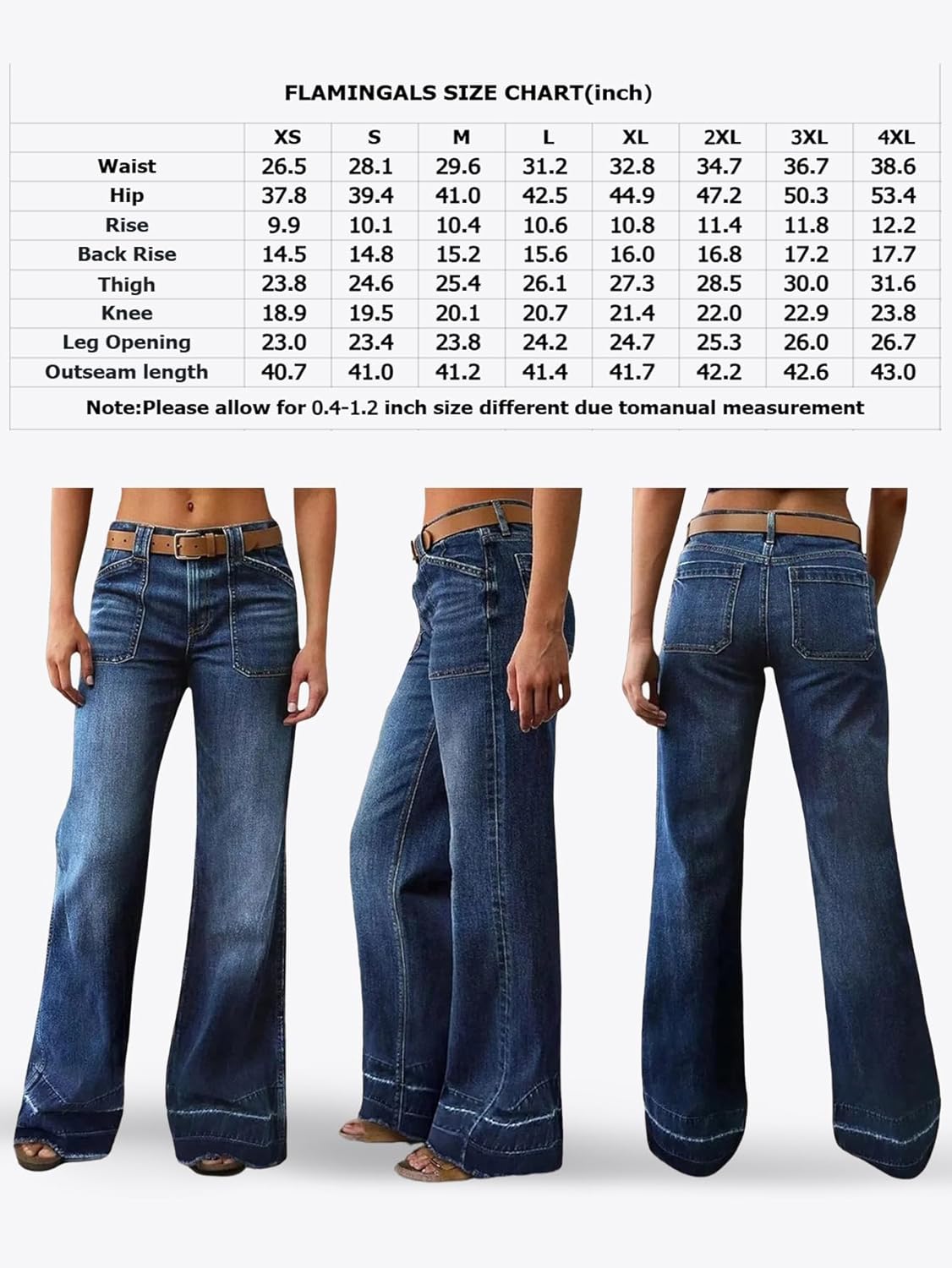 Flamingals Wide Straight Leg Mid Rise Baggy Pocket Denim Jeans Without Belt