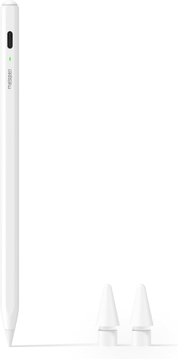 Lápiz Metapen Air8 para Apple iPad 2018-2025, (Batería de 20H), Carga más rápida en 10 minutos, Lápiz óptico de rechazo de palma para iPad a16/11/10/9/8/7/6ª Gen, Pro 12.9/11/13-pulgadas M4, Air 3/4/5/M2/M3, Mini 5/6ª