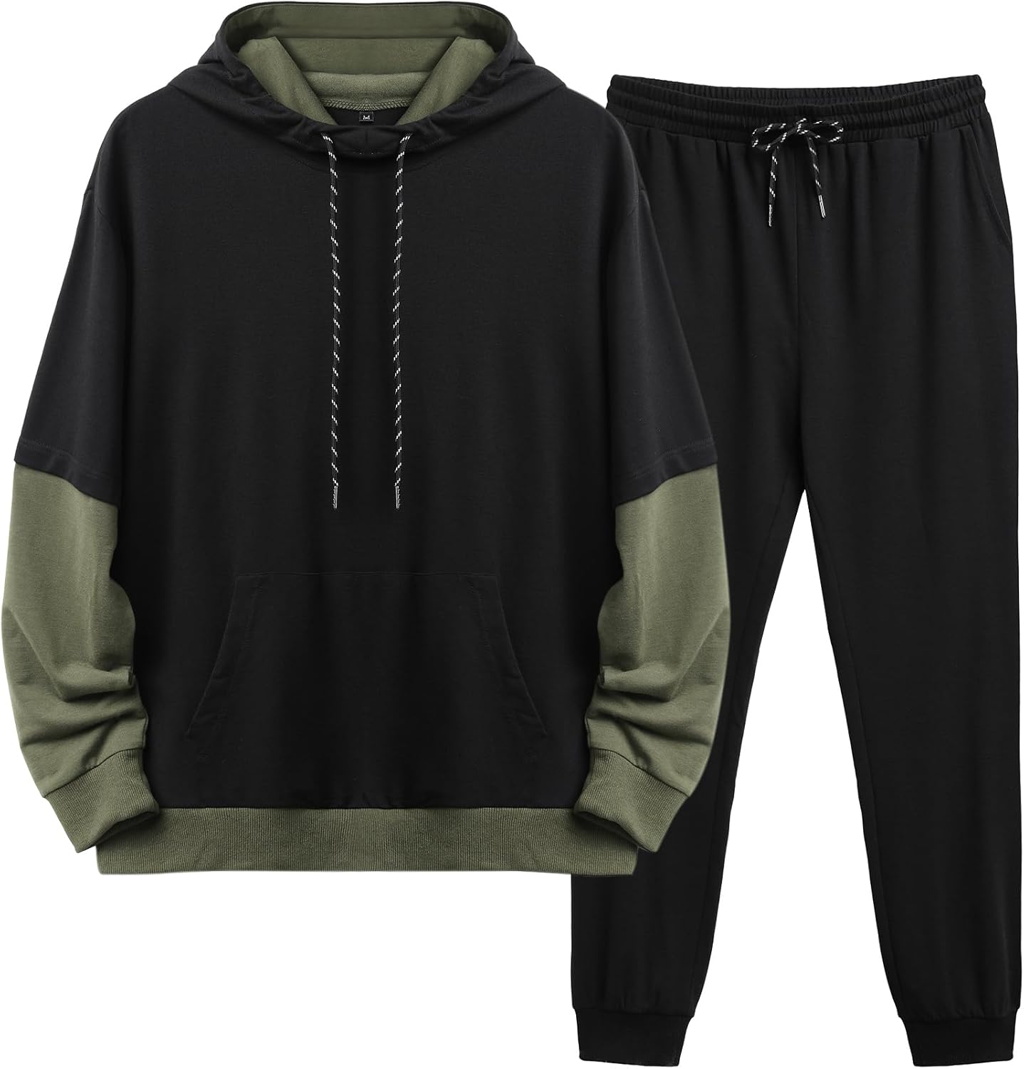 LecGee Men 2 Piece Tracksuit Outfit Contrast Color Patchwork Hoodie Sweatshirt Sweatpants Casual Jogging Sweatsuit Set