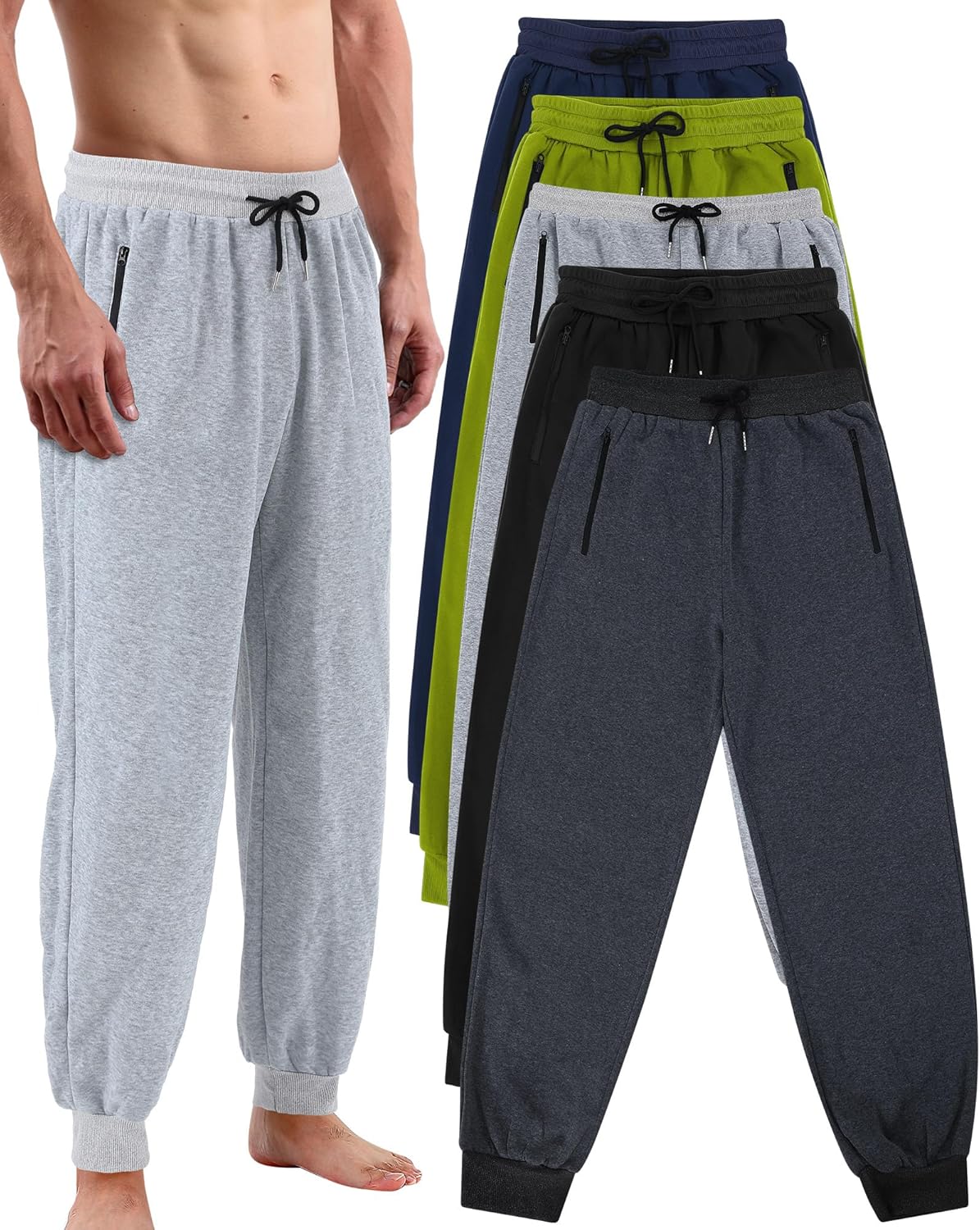 Chuarry 5 Pack Mens Sweatpants Lightweight Fleece Jogger Active Athletic Pants with Zipper bags and Drawstring