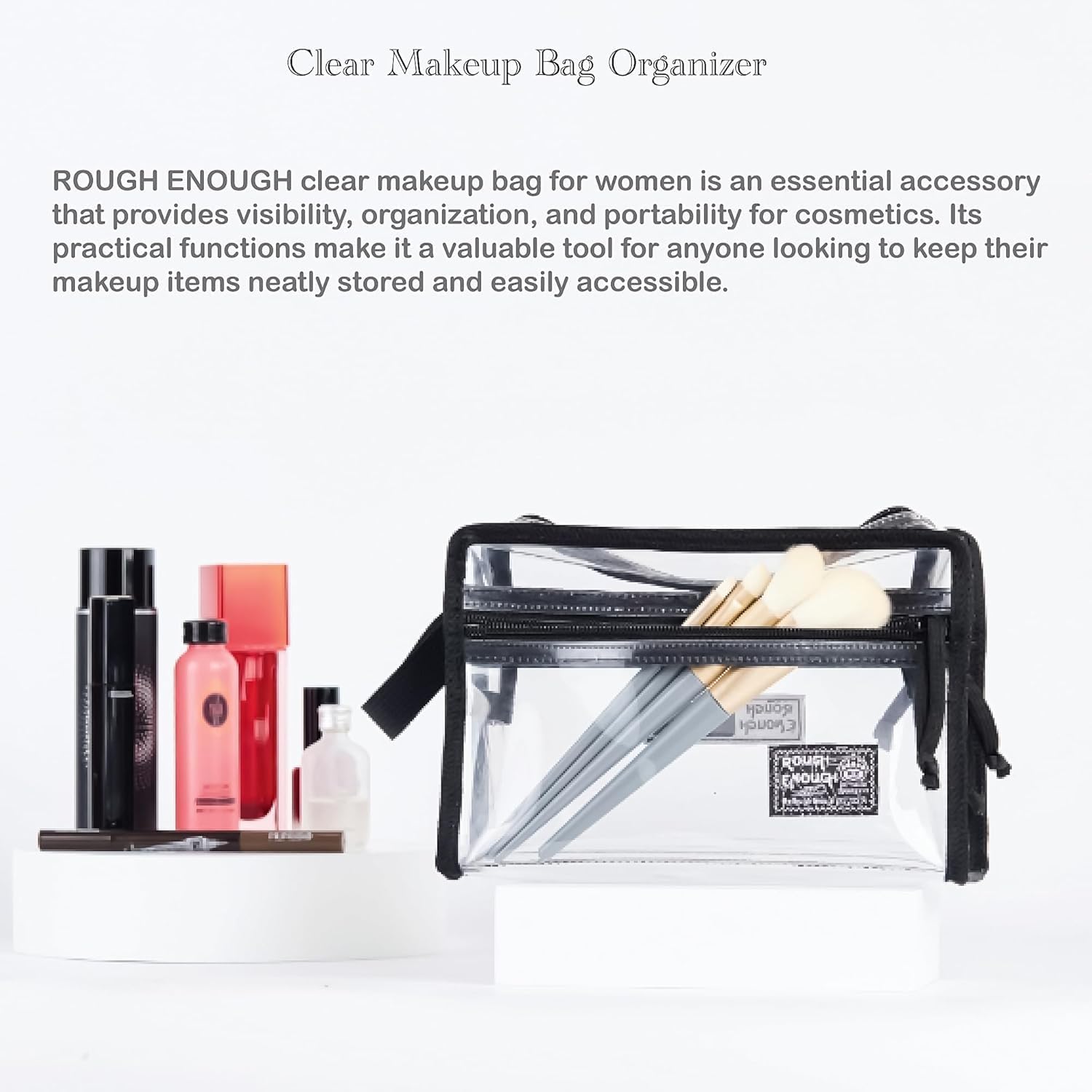 Rough Enough Clear Travel Toiletry Bag for Women Makeup Cosmetic Bags Skincare Essentials Transparent Pouch Organizer with Handle