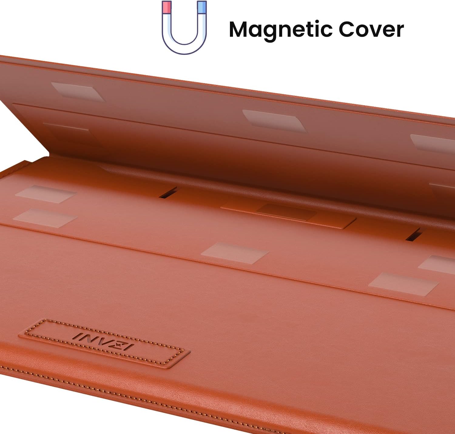 Laptop Sleeve with Invisible Stand : It is designed with a strong magnetic closure and also works as MacBook stand and can be transformed into an invisible stand. Comfortable typing and lift the device for better airflow and heat dissipation. INVZI laptop Sleeve offers the protection needed for wherever your work takes you.