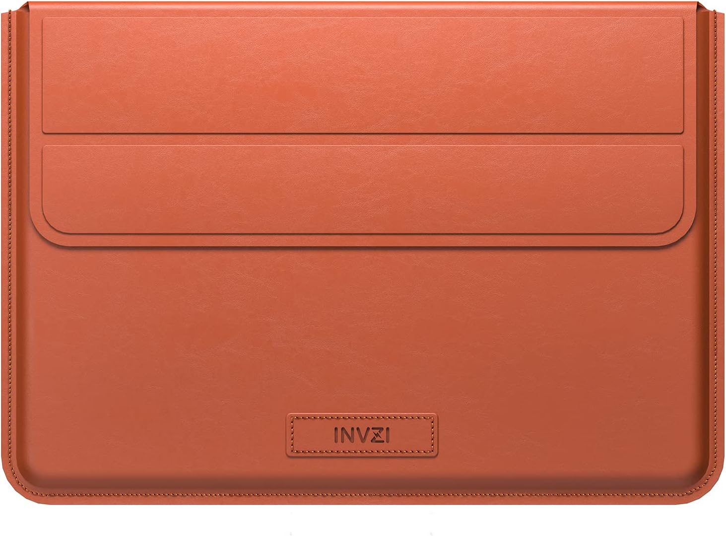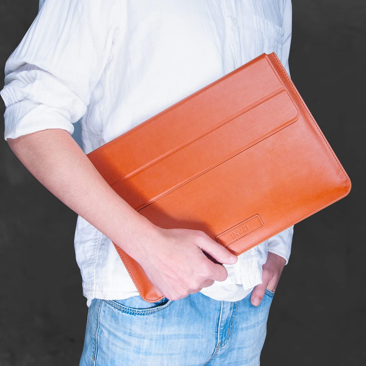 INVZI MacBook Sleeve, Vegan Leather Bag Compatible with 15”/16" MacBook Pro M3/M2/M1/Max 2024-2019, Compact Design with Invisible Stand (Brown, 16'' for 15-16'' MacBook)