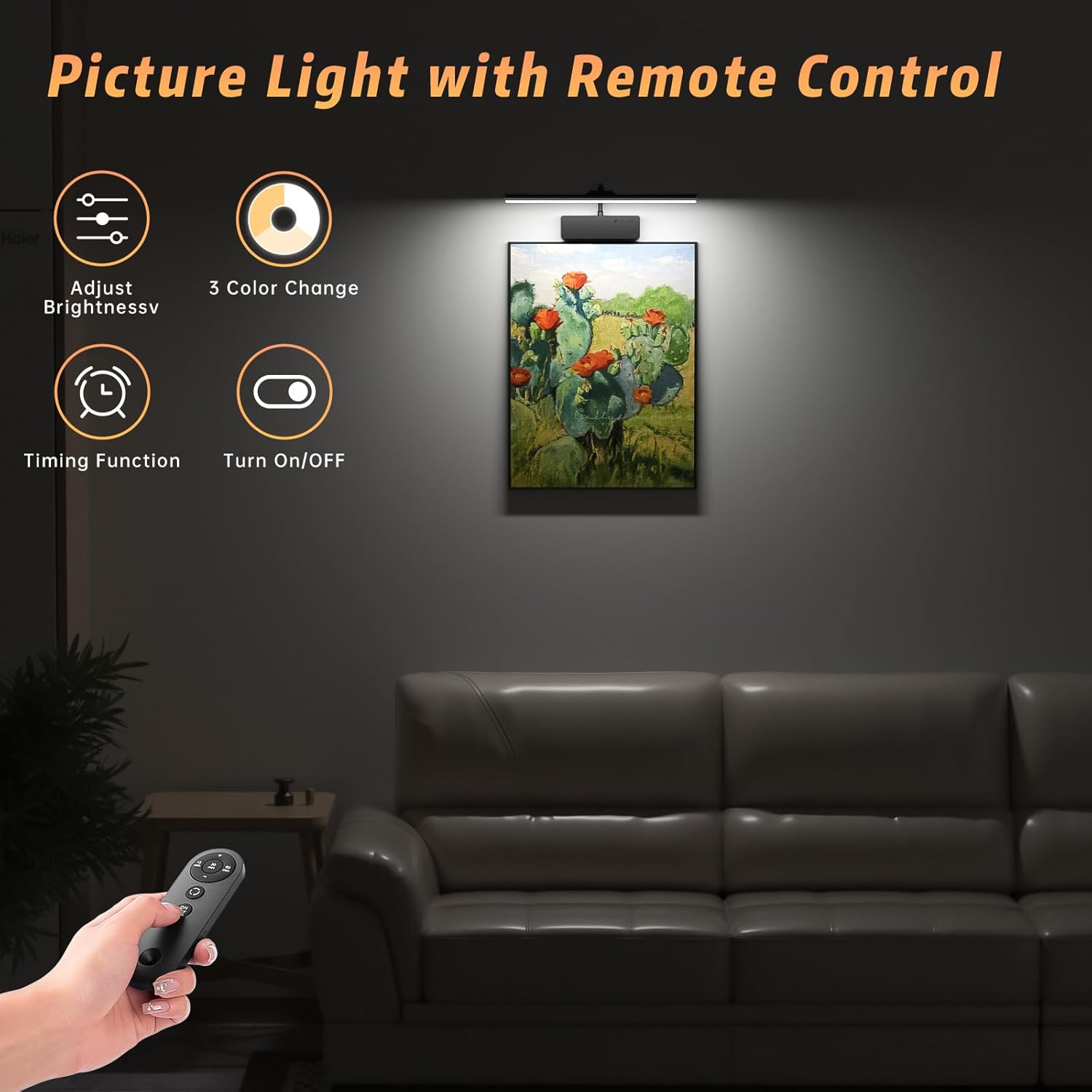 3 Color Temperatures & 5 Brightness: Lightbiz wall lights for pictures has 3 color temperatures which are 3000k, 4500k, and 6500k, giving options for tone appropriate for the piece being lit and personal preference. You can also adjust the 5 brightness to enhance the ambiance of the picture or illuminate framed photos. The battery operated lights provides many possibilities to you life.