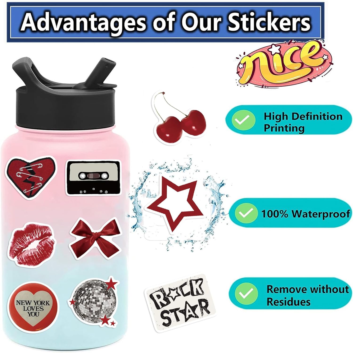 Amplia Utilización: Todos estos lindos stickers estéticos están hechos de material de vinilo que es impermeable y no se desvanece fácilmente. Se pueden usar tanto en interiores como en exteriores, proporcionándote suficientes opciones para decorar tu botella de agua, cuaderno, teléfono, laptop, computadora, tabla de skate, equipaje, parachoques de auto, bicicleta, dormitorio, moto, pared de snowboard, etc.