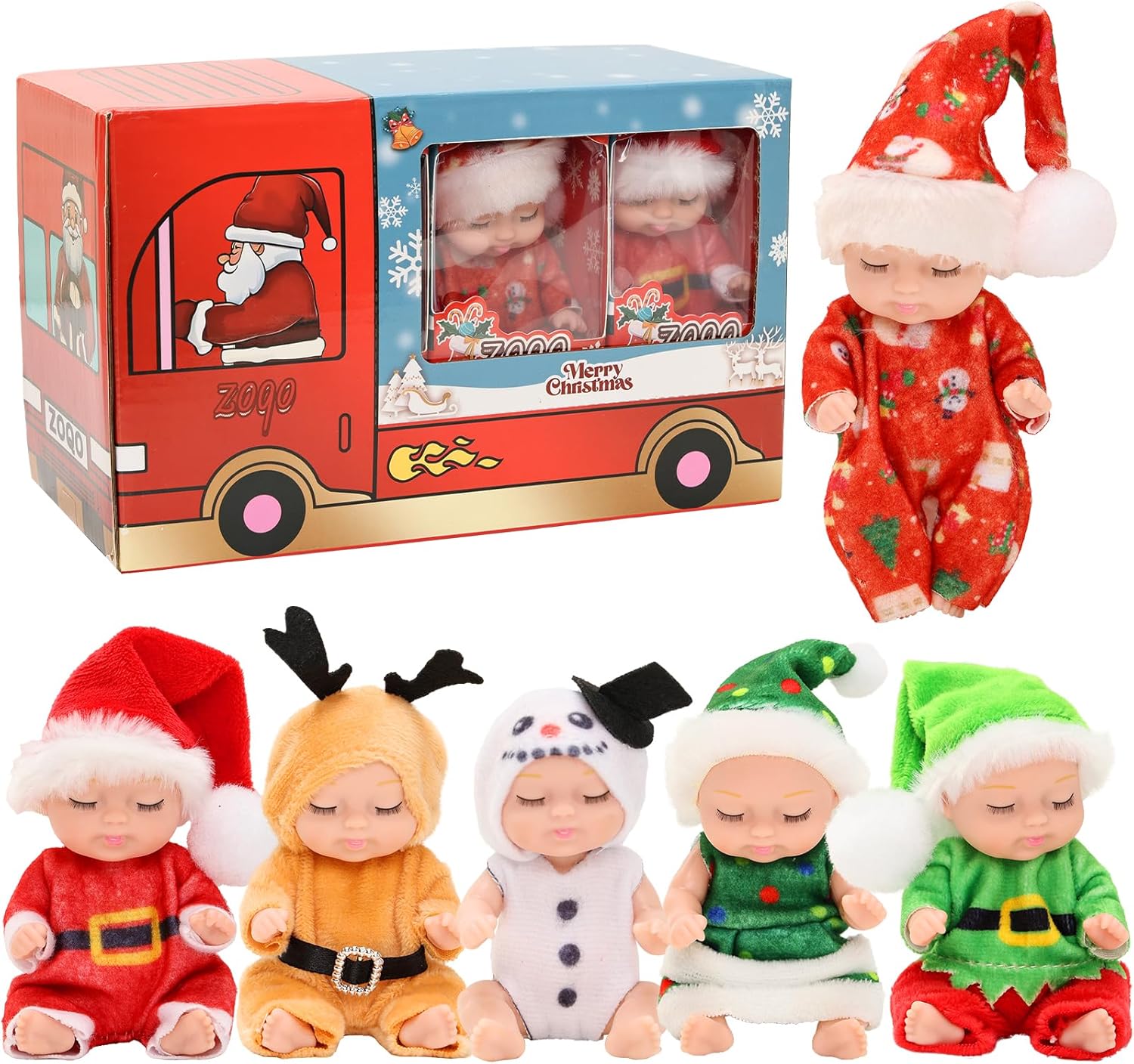 PACKAGE INCLUDES - 6 pcs 4 inch sleeping baby dolls and 6 sets cute doll clothes, as well as a Christmas themed gift box.